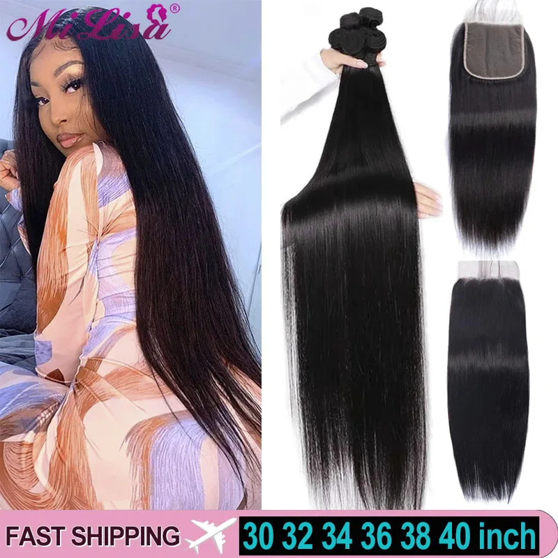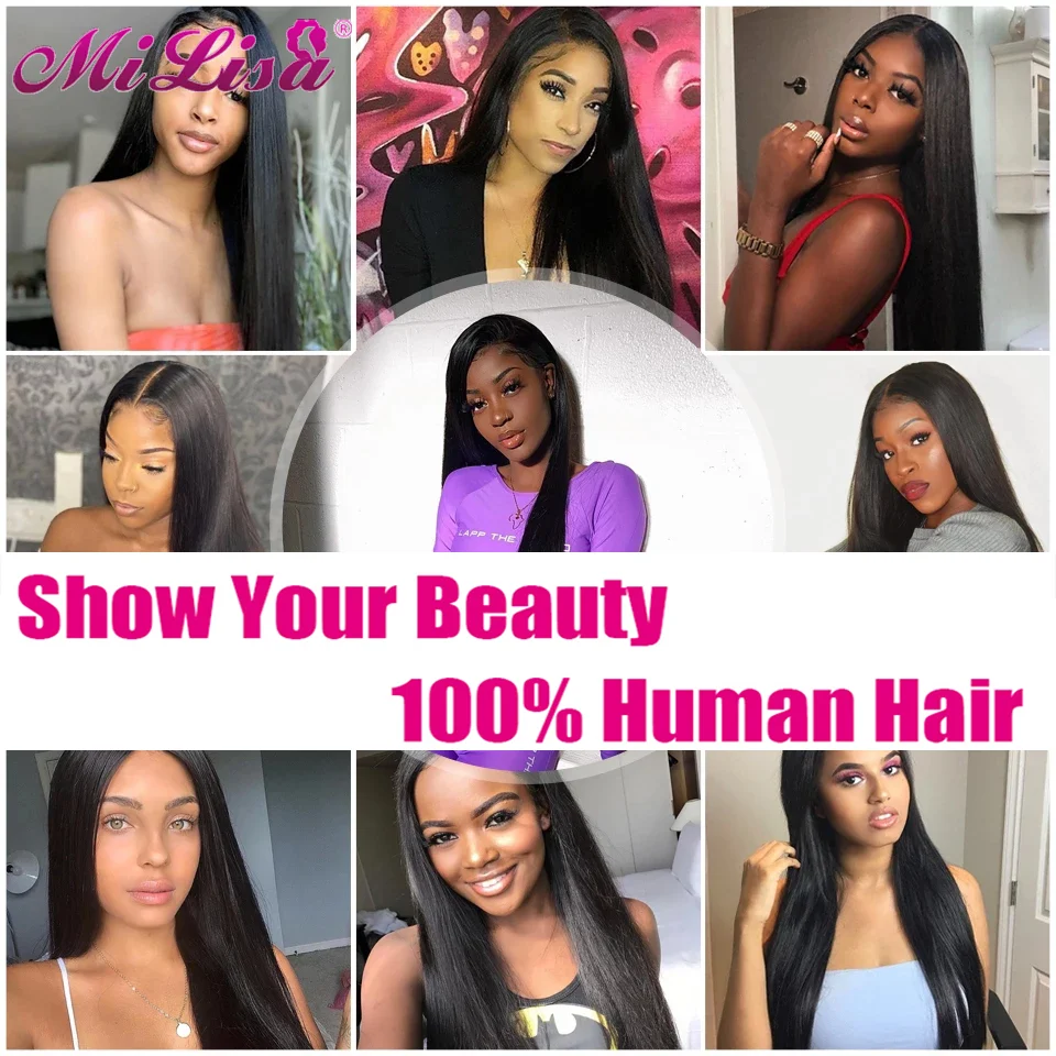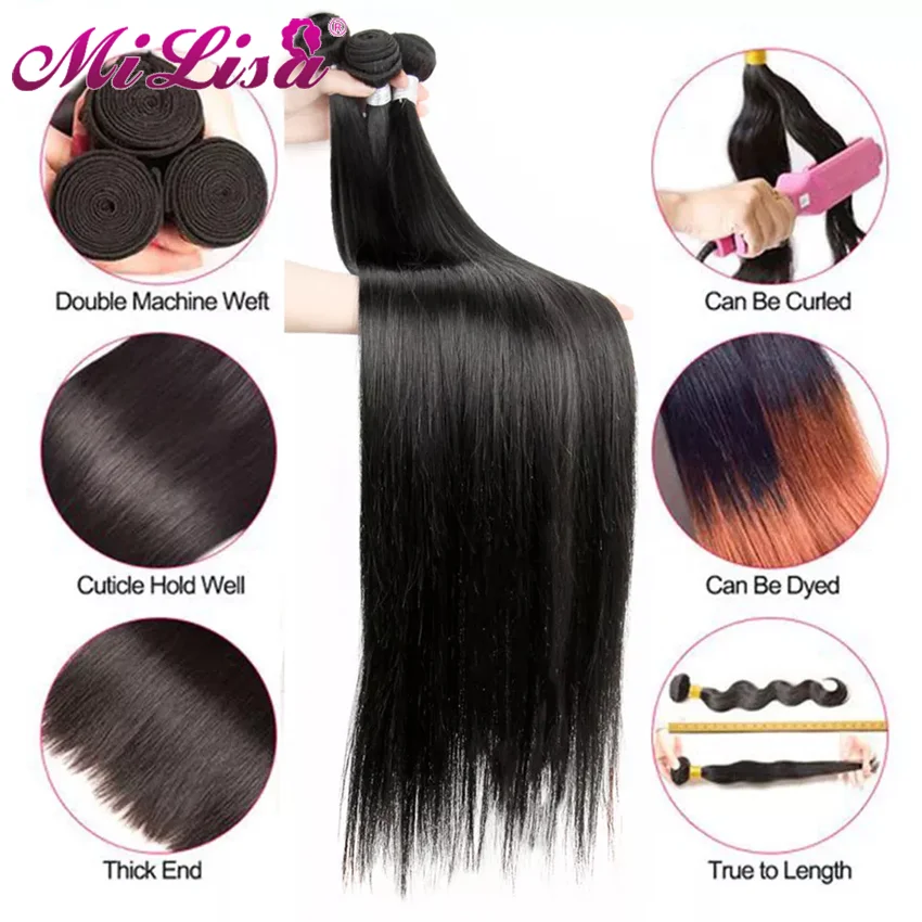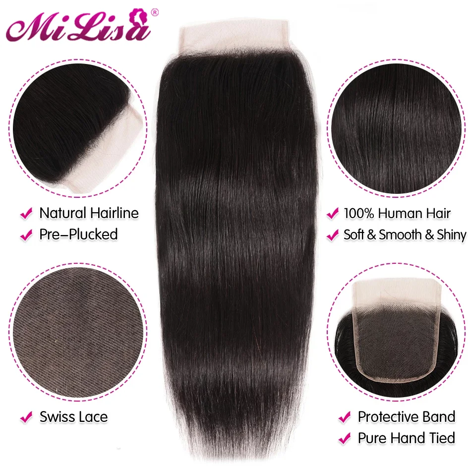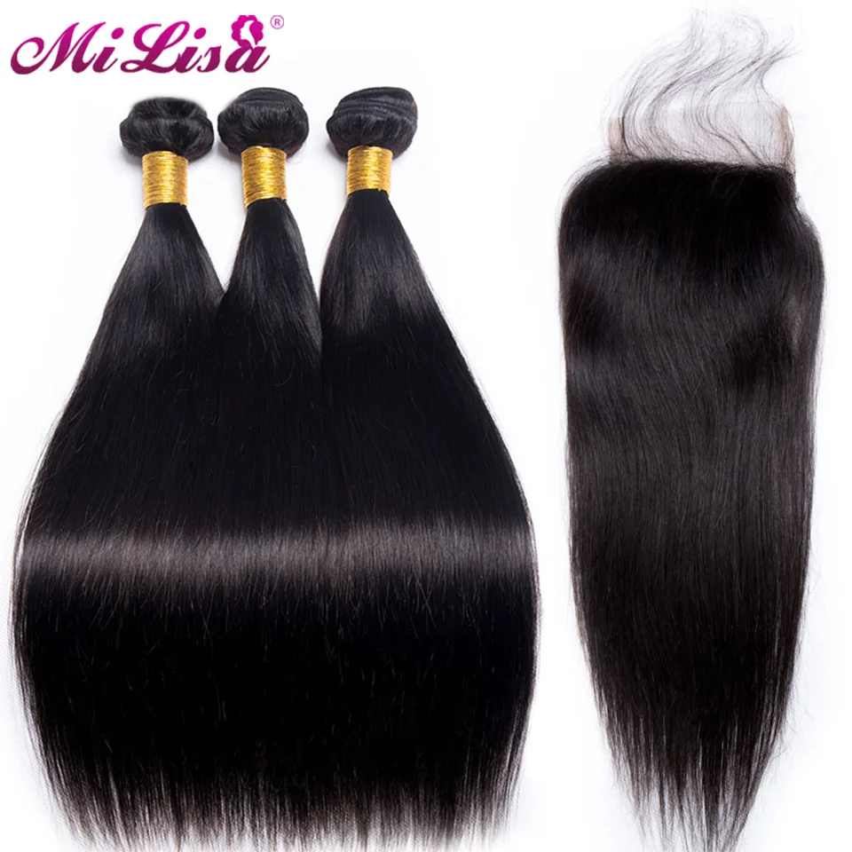 Прямые пряди волос с закрытием бразильские волосы плетение 3 пряди с закрытием Mi Lisa Remy человеческие волосы для наращивания с закрытием