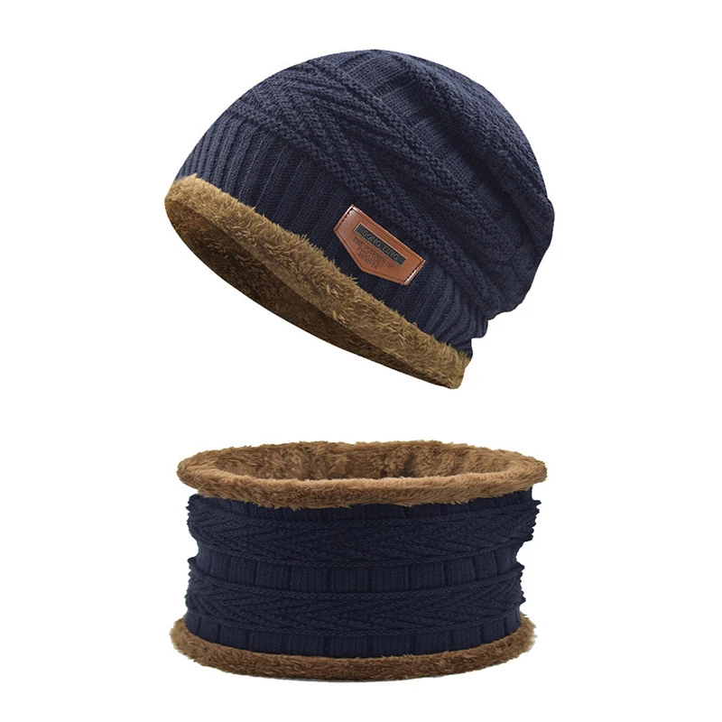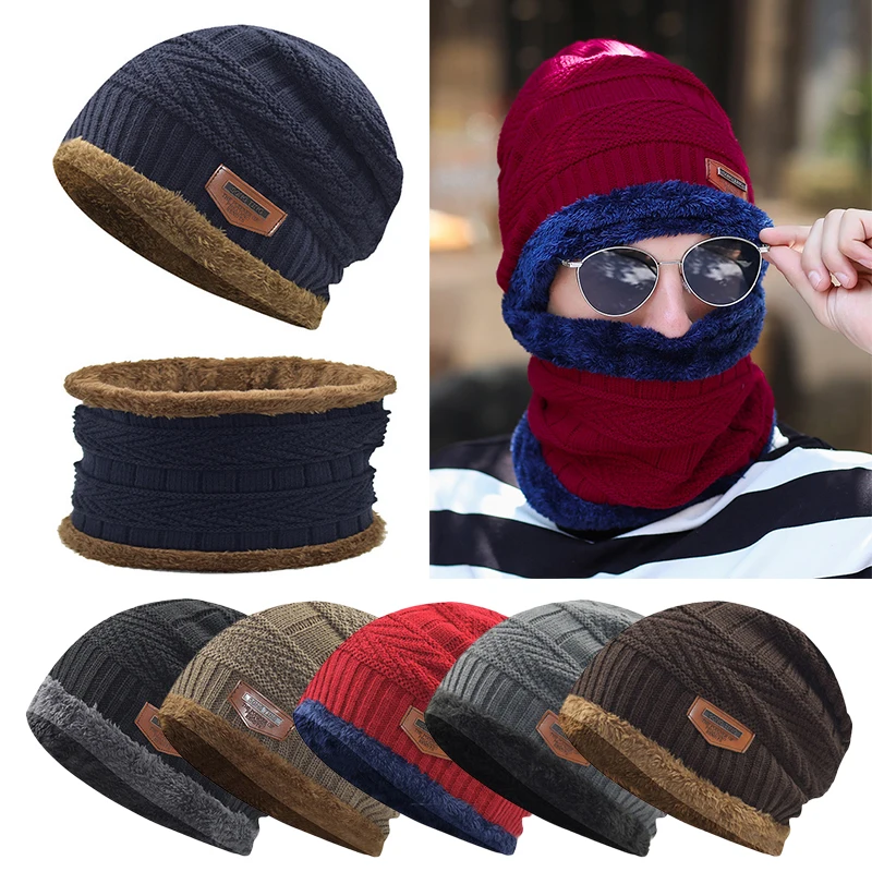 Для мужчин теплая зимняя шапка из меха Мягкая вязаная шапка и шарф,...
