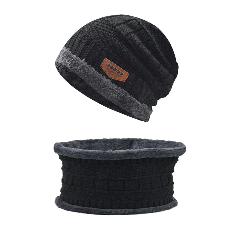 Шапка + шарф, 2 шт.комплект, для мужчин и женщин, вязаная шапка из плотного флиса, согревающая лицо, приятная для кожи, на зиму, теплые зимние лыжные шапочки