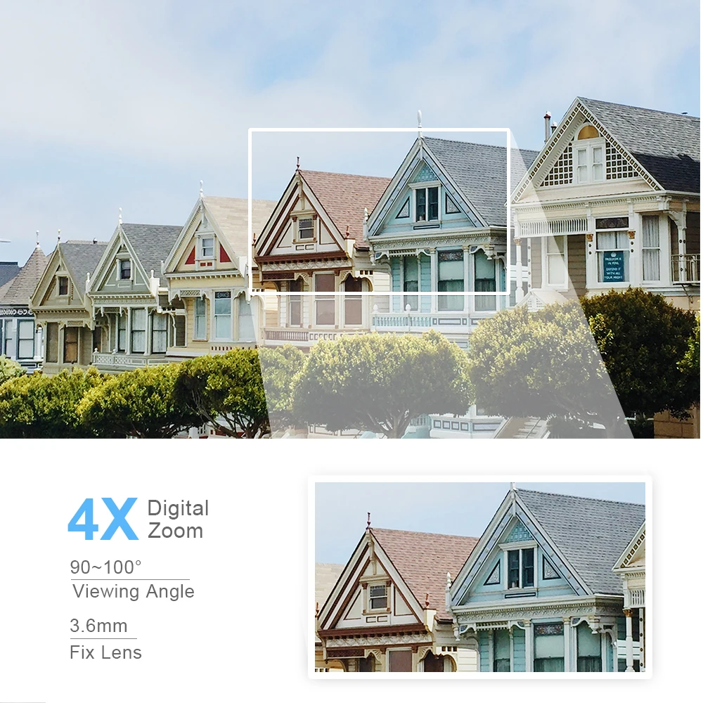 3,6 мм объектив с фиксированным фокусным расстоянием, 4XDigial с переменным фокусным расстоянием Нажмите и удерживайте экран обеими руками, чтобы увеличить/уменьшить масштаб и увидеть более подробную информацию.