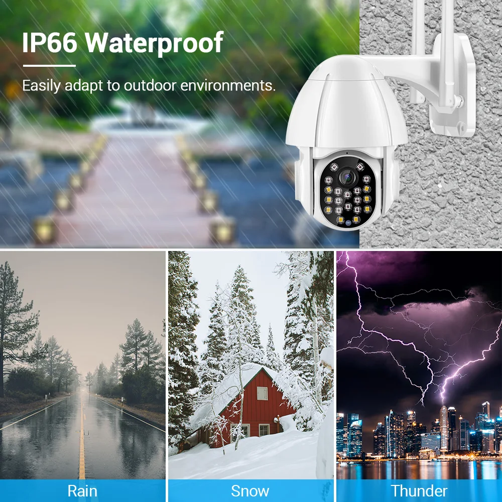 HD1080P PTZ Wi-Fi камера с 4-кратным цифровым зумом, автоматическое отслеживание, двухстороннее аудио, водонепроницаемая наружная беспроводсветильник камера, сирена, свет, YCC365
