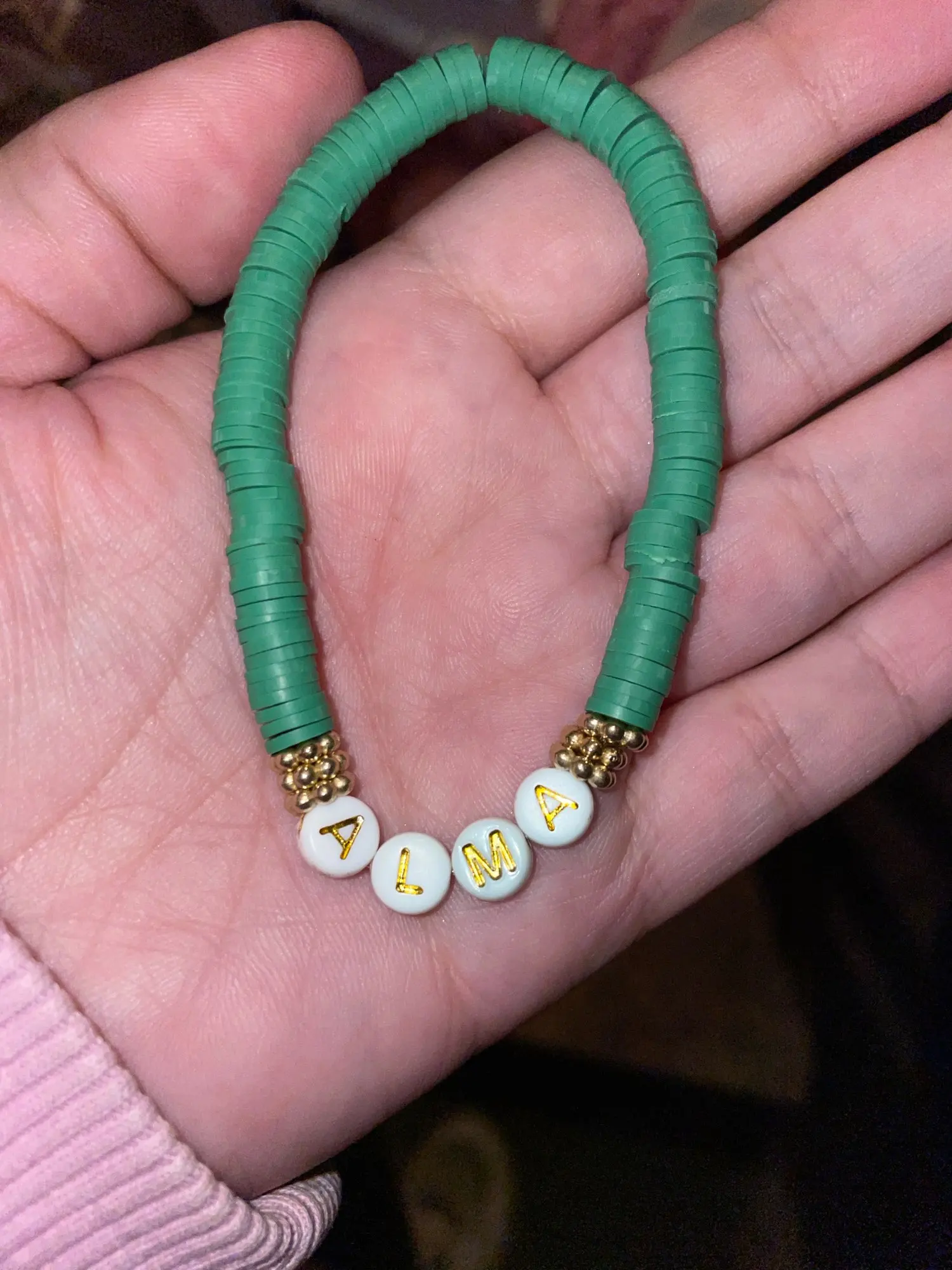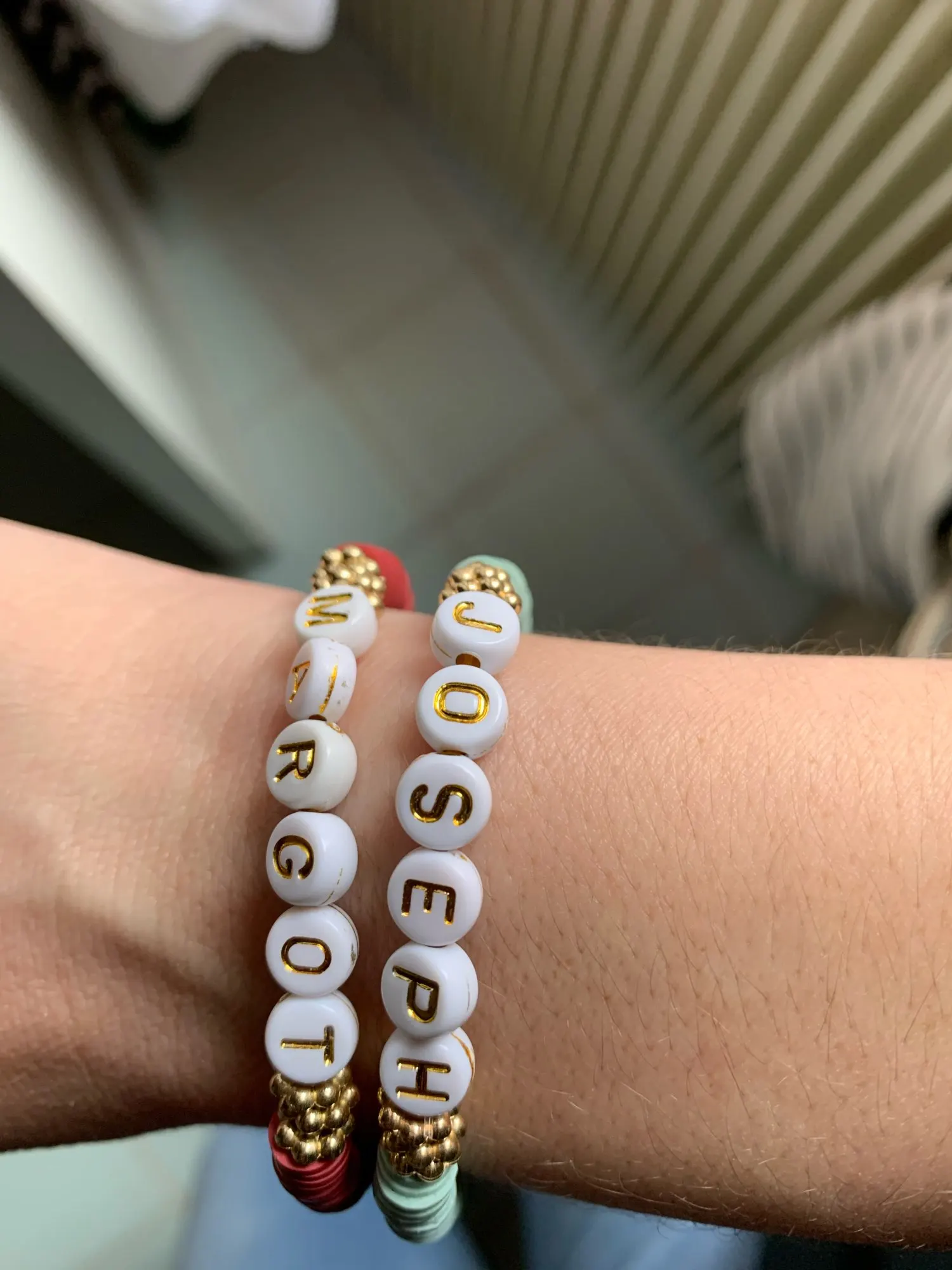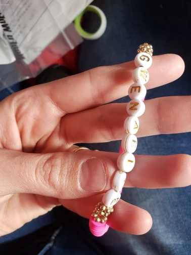 Я попросил имя, составленное жемчужиной, чтобы сделать выстрел, и это было соблюдено. Очень красивые браслеты!