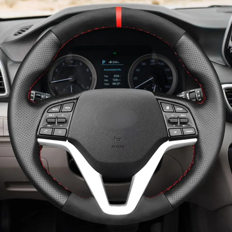 Мужская прошитая вручную обувь черного цвета из натуральной кожи и замши Чехлы рулевого колеса автомобиля для Hyundai Tucson 3 2015 2016 2017 2018 2019 2020