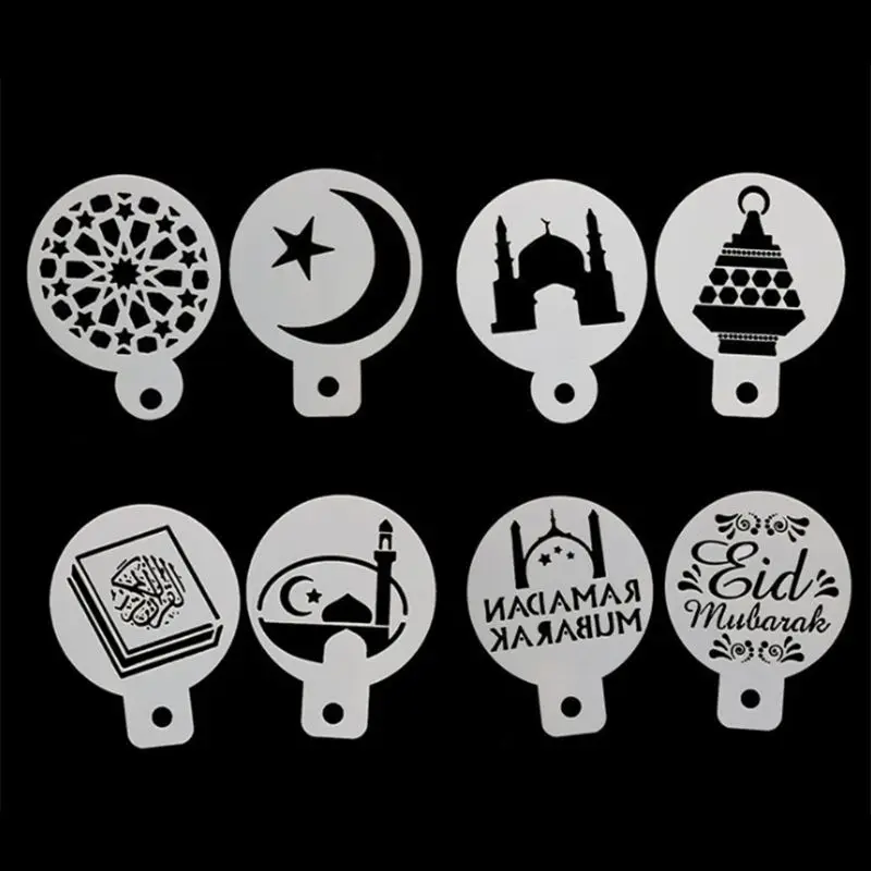 8 шт.компл. ИД Мубарак Рамадан Луна кофе цветок спрей трафареты торта украшения DIY