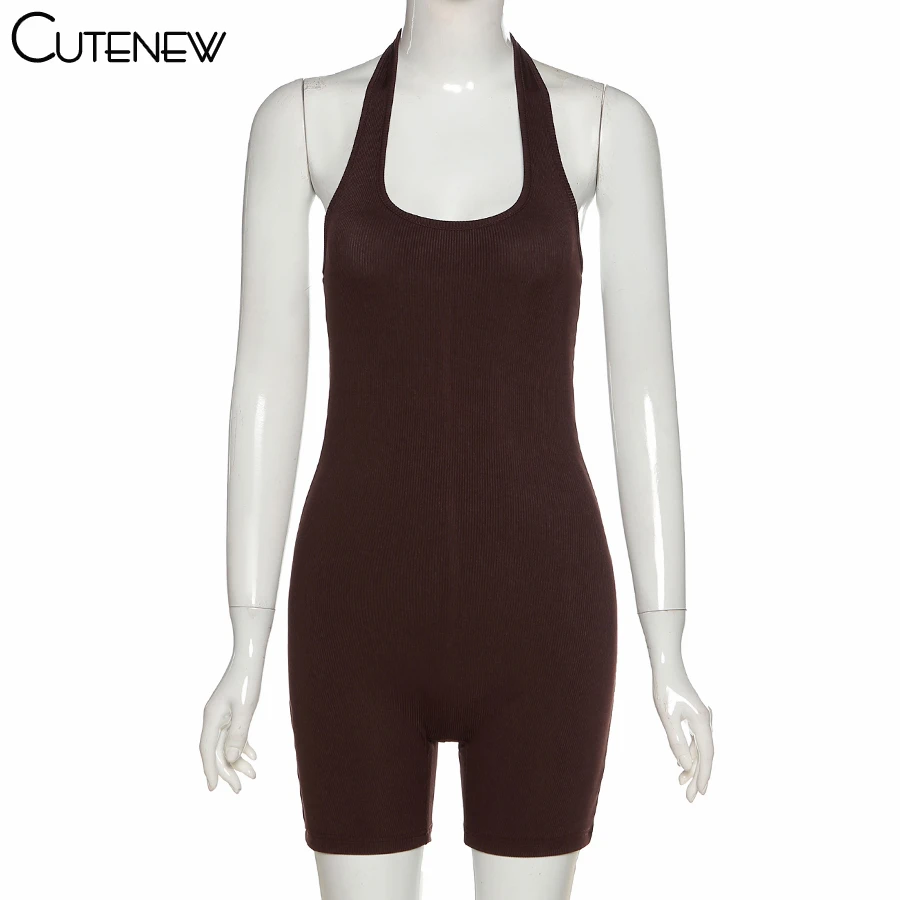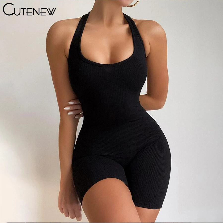 Cutenew платья без рукавов для детей, спортивной тренировки Холтер комбинезон Для женщин Повседневное ношения при активном образе жизни с низким вырезом на спине легкий костюм с шортами одежда для спорта и отдыха в байкерском стиле комбинезоны