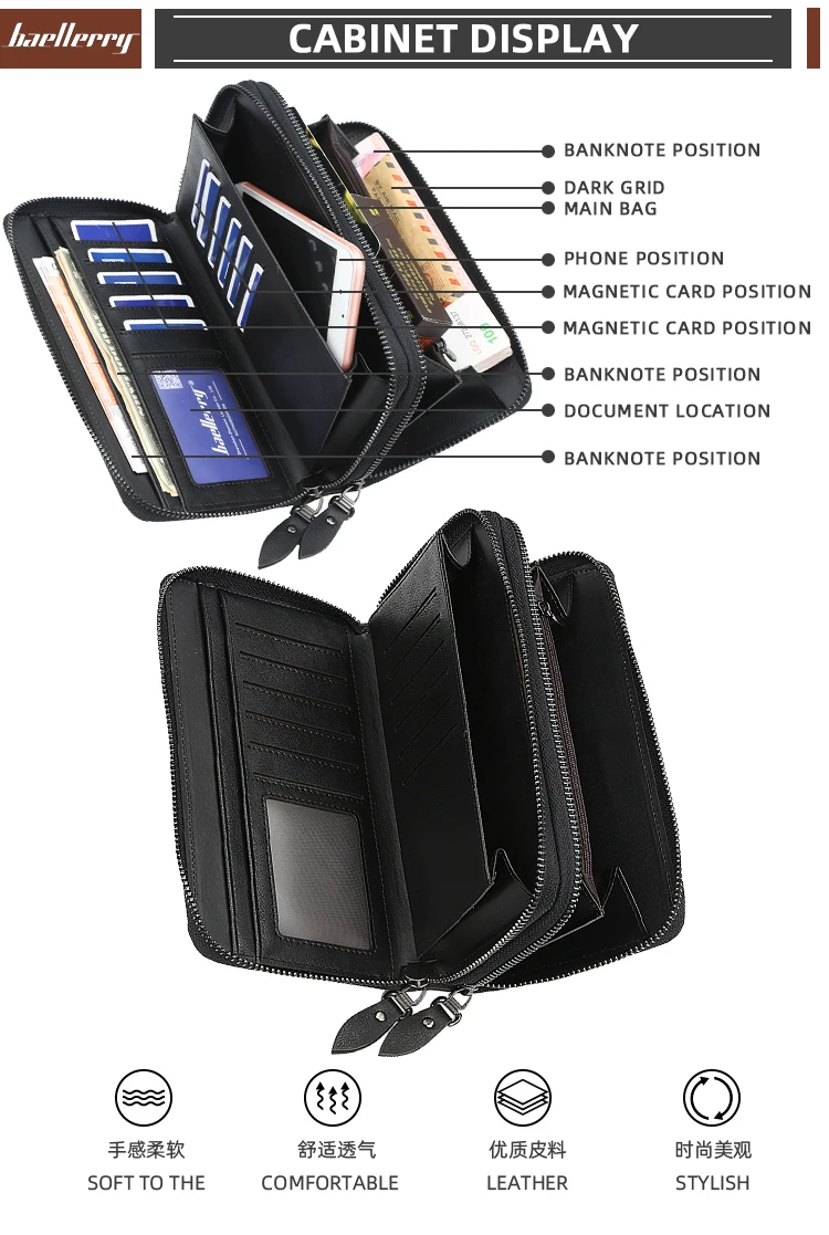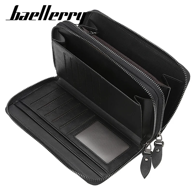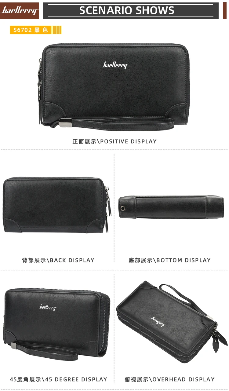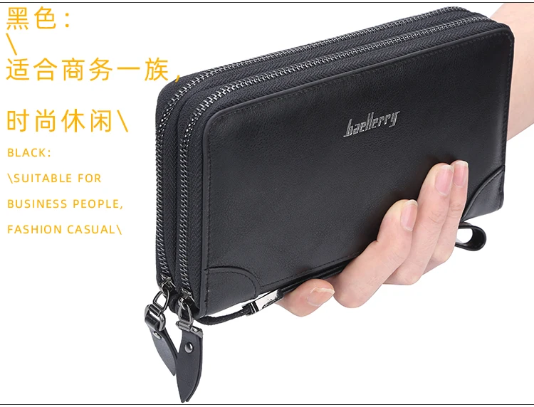 Кошельки мужские с большой вместимостью, бумажник с кармашком для телефона на двойной молнии, клатч, пропуск, деловой клатч