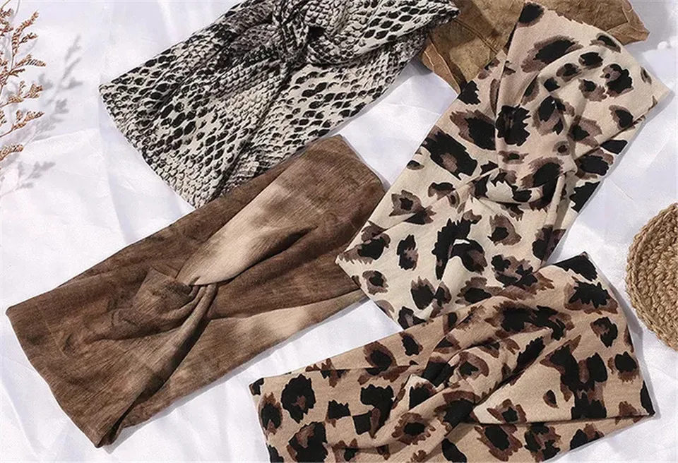 Повязка для волос с леопардовым принтом в стиле бохо, повседневный стильный тюрбан с перехлёстом, аксессуар для волос, широкая эластичная лента для волос