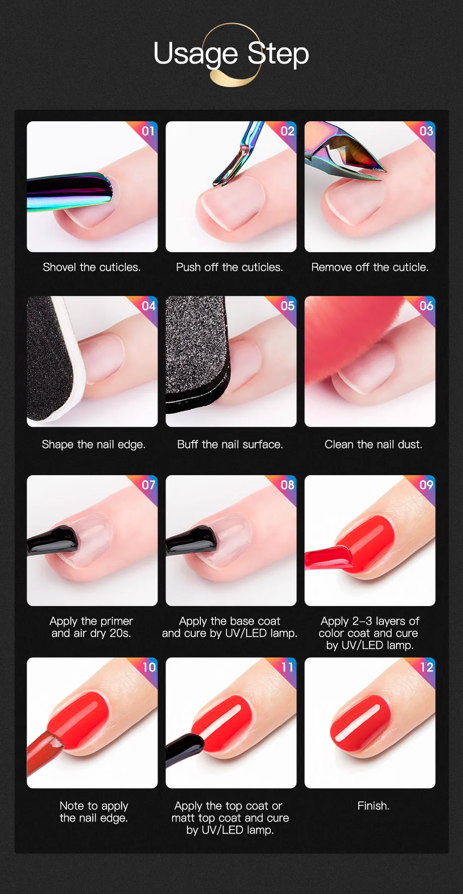 Характеристики Товара:Бренд: ROSALINDНазвание: Базовое покрытиеОбъем: 7 млЦвет: прозрачныйОтверждение: УФ/Светодиодная лампаХарактеристика: ① хорошая вязкость② Долговечный③ ОтмачиваниеПосылка: 1 * Базовое покрытие-Качество-наш первый приоритет.-Почти без запаха (только верхнее покрытие имеет умеренный запах), мы применяем только органическую текстуру для защиты вашего здоровья.-Кисть мягкая и легко наносится.-Долговечный, Гель-лак держится более 28 днейФункцияБазовое покрытие-Увеличивает прилипание ногтей и цветного геля-Эффект изоляции и защита ногтей-Украшение для дизайна ногтей, не отслаиваетсяВерхнее пальто-Защищает ногти от истирания-Делает ногти гладкими и блестящими-Предотвращает пожелтение цветаШаг за шагом:-1. Придайте ногтю форму. Слегка отполируйте поверхность ногтевой пластины. Средство.-2. Нанесите базовый слой основы от кутикулы до свободного края (не забудьте закрыть край ногтя). Высушите ногти под светильник кой в течение 10 секунд или под УФ-светом в течение 2 минут.-3. Нанесите тонкий слой гель-лака выбранного цвета. Свободный край крышки. Выдержка: 30 секунд светодиодный Ной лампе или 2 минуты в УФ-лампе.-4. Нанесите 2-й тонкий слой гель-лака на ногти. Подержите под светодиодной лампой в течение 30 секунд или под УФ-светом в течение 2 минут.-5. Нанесите верхнее покрытие. Свободный край крышки. Выдержка: 30 секунд в светодиодный Ной лампе.-6. Удалите липкие остатки на ногтях с помощью очищающего средства. Затем нанесите питательное масло для кутикулы, чтобы увлажнить кутикулу и кожу вокруг ногтя.Внимание:1. Объем 7 мл. Так как емкость флакона больше 7 мл, гель для ногтей не будет полностью заполняться флаконом!2. Плотно закрывается. Хранить вдали от солнечного света. Хранить в недоступном для детей месте.