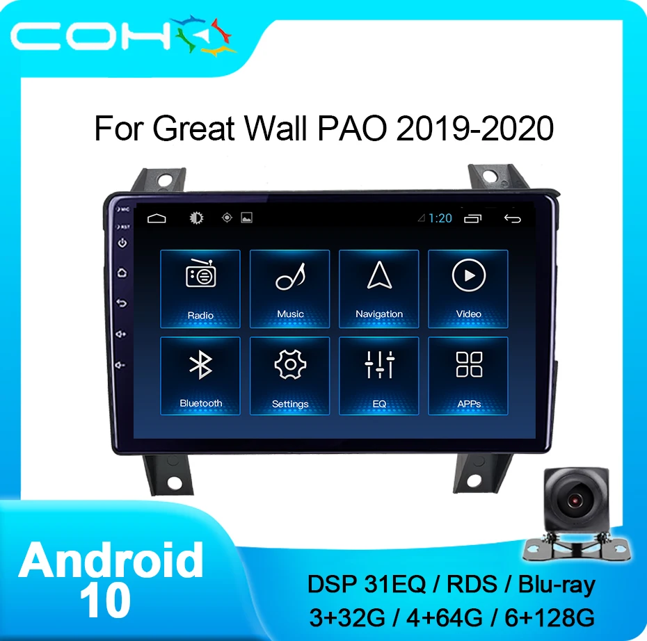 COHO для Great Wall PAO 2019-2020 автомобильный радиоприемник, мультимедийный плеер, автомобильный Gps-навигатор, Android 10,0, Восьмиядерный процессор, 8 + 256G QLED 1280*720
