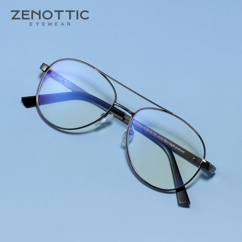 ZENOTTIC Pilot компьютерные очки, оправа, металлические оптические очки, анти-синий светильник, progeestive, линзы для близорукости, очки по рецепту
