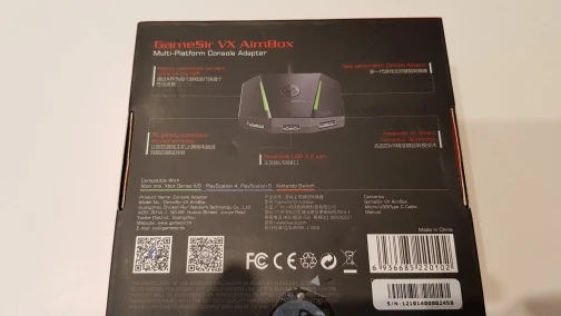 Бренд: GameSirМодель: VX AimBoxПодключение: проводное (для клавиатуры/Мыши/контроллера) / Bluetooth 5,0 (для приложения GameSir)Рабочие платформы: Xbox серии X / Xbox серии S / Xbox One X / PlayStation 4 (PS4) / PlayStation 4 Slim / PlayStation 4 Pro / Nintendo SwitchПодключение: 3 * USB 2.0 портовПосылка Размеры: 12,9*12,3*2,9 смВес брутто: 186 г