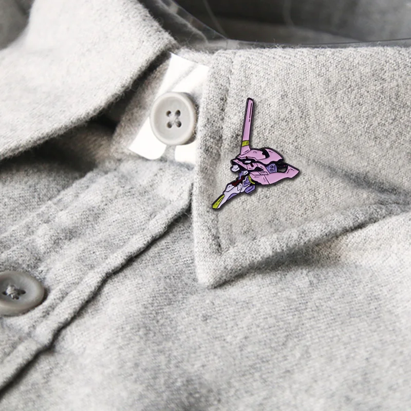 Жесткая эмалированная брошь-значок с героями мультфильмов Евангелион