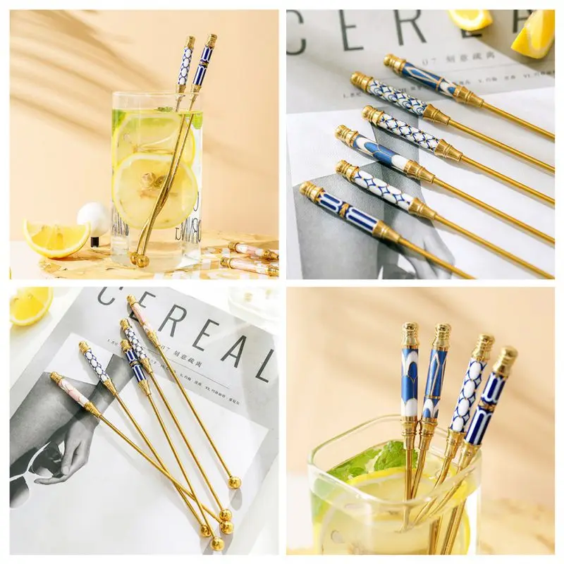 1. Отборные материалы, с использованием пищевой нержавеющей стали с титановым покрытием золота, безопасный и экологически чистый, и может быть использован с уверенностью; 2. Керамическая ручка печатается с изысканным четкость и не выцветает после того, как он был уволен при высокой температуре более 1000 градусов; 3. Ретро-дизайн, шикарный и красивый, красивый и благородный; 4. Различные виды применения, подходит для кофе, горячего чая, молочного чая и т. д.; 5. Светильник в роскошном стиле, изысканный и элегантный, улучшает жизненное настроение и вкус высокого класса.