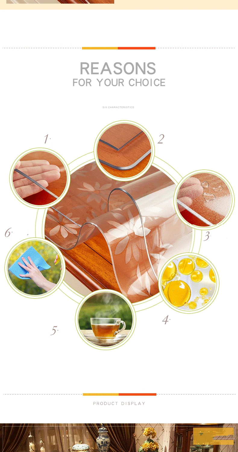 Улучшенная скатерть без запаха из ПВХ толщиной 1,5 мм2 мм3 мм, скатерть из мягкого стекла, прозрачная скатерть из ПВХ для стола, матерчатые коврики fada Dec