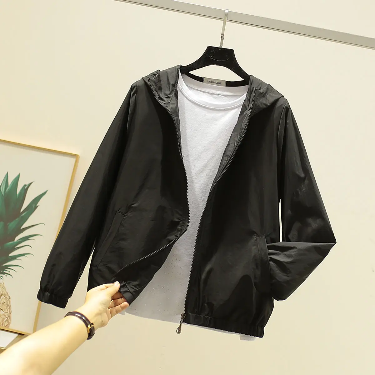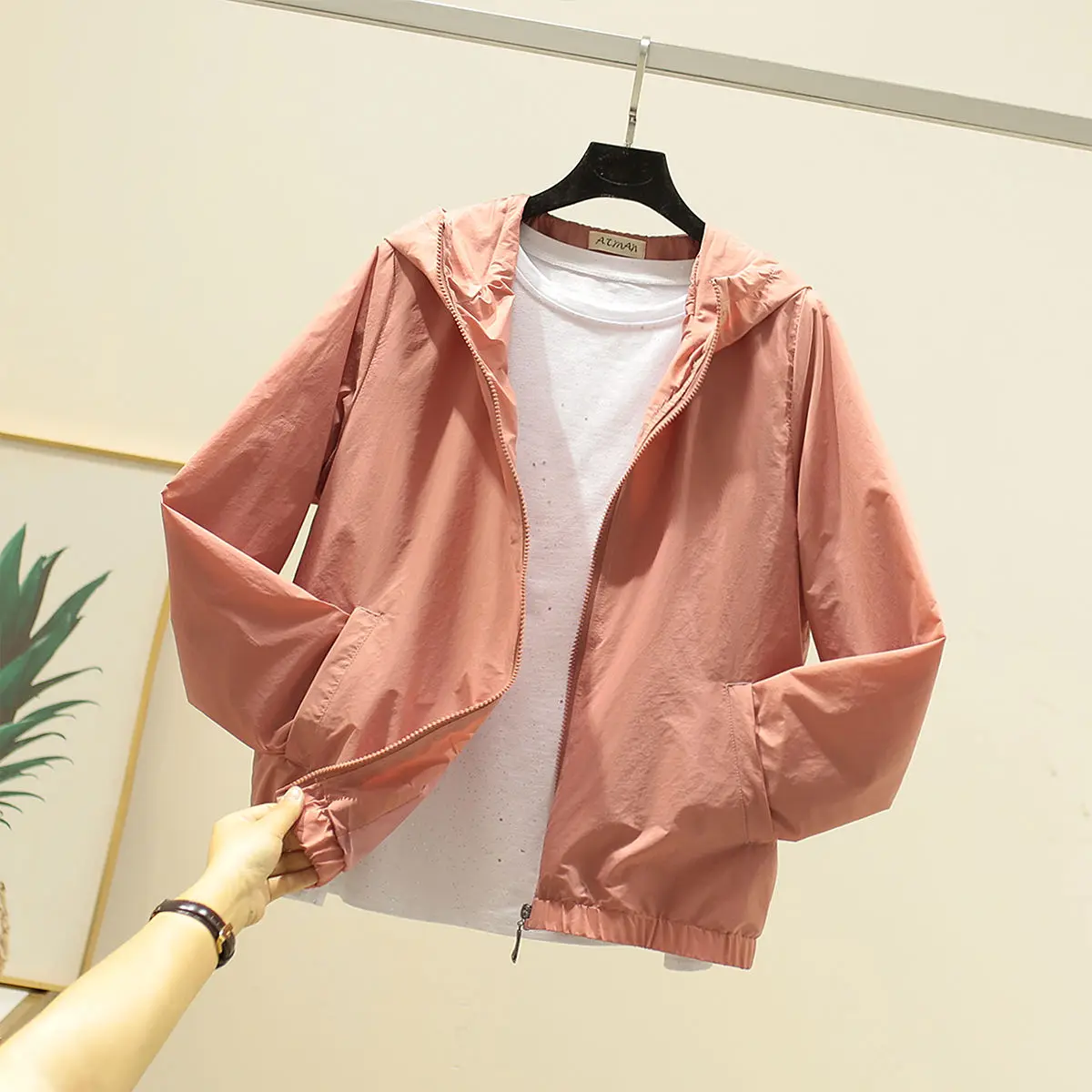 Летняя простая куртка-бомбер для женщин, с капюшоном, на молнии, тонкая, 1271430