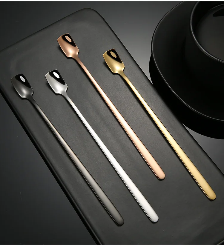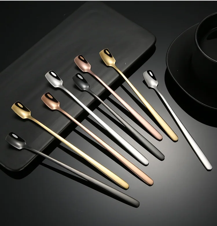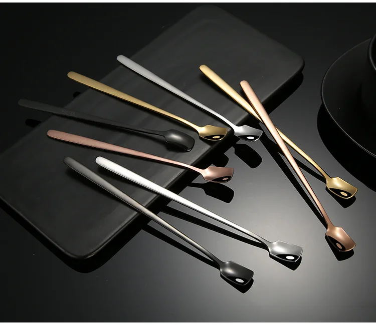 10 шт нержавеющая сталь с квадратным носком золотой кофе мешалка Творческий ложки с длинной ручкой, ледяной бар кружка чайная ложка
