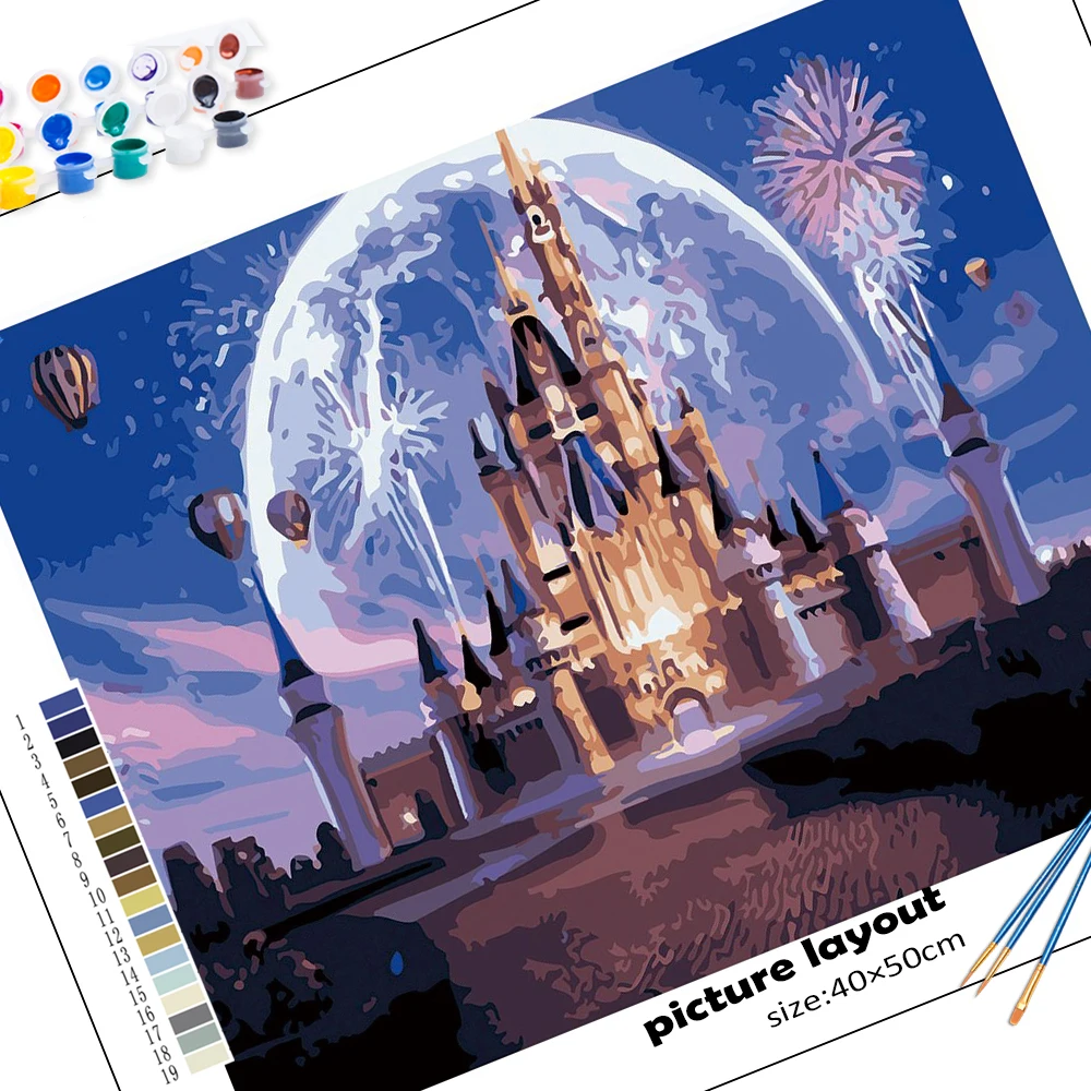 CHENISTORY Радуга замок DIY живопись по номерам ручная роспись холс...