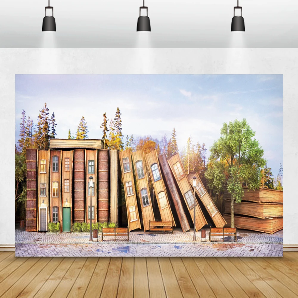 Laeacco книжная полка Фото фоны деревья книга дом семейство детский портрет фотографии фоны для фотостудии
