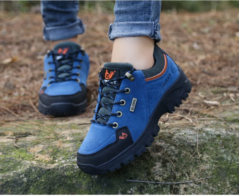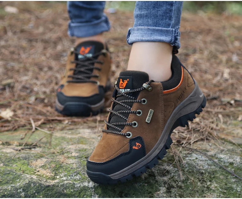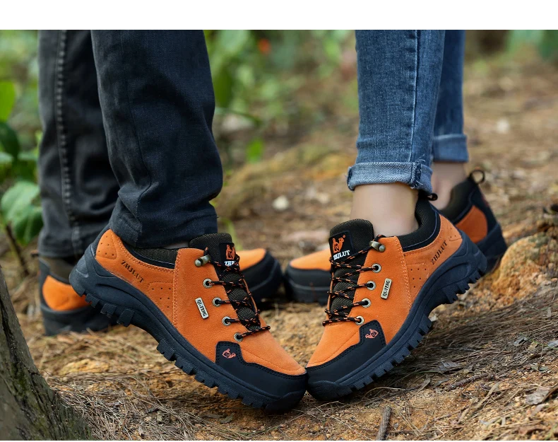 Мужские замшевые кроссовки для пешего туризма, оранжевые кроссовки из высококачественной кожи, обувь для походов на осень и зиму