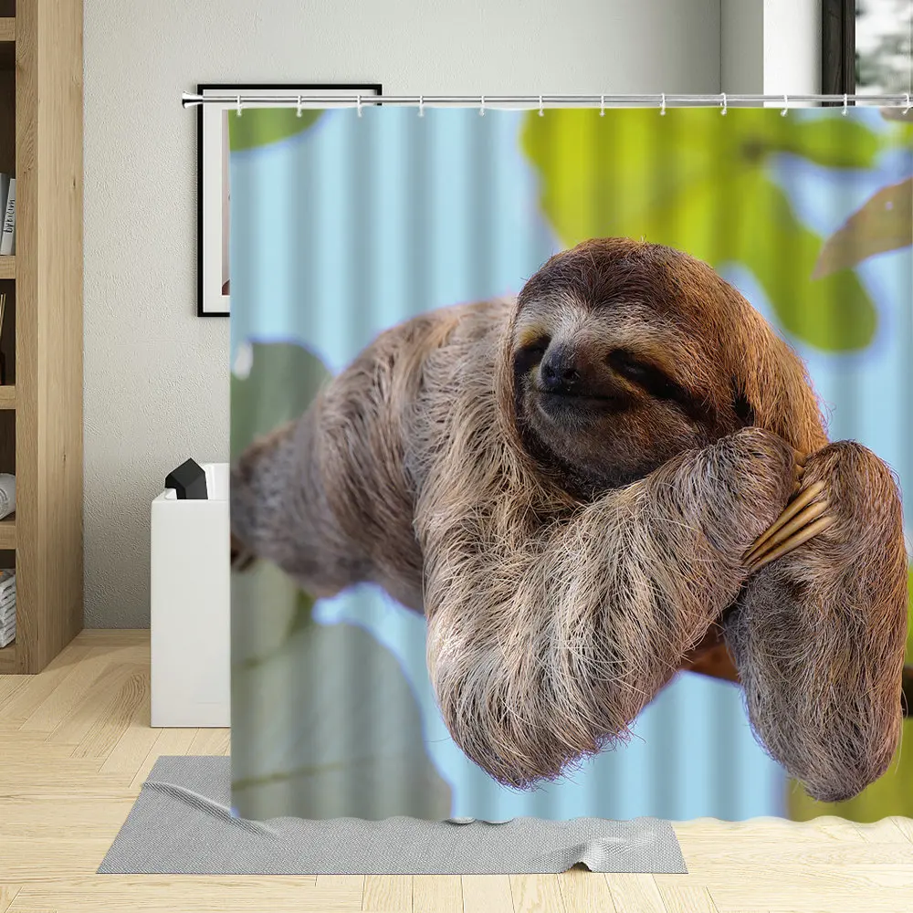 Смайл ленивый портрет занавеска для душа дикие животные милый ленивый в джунглях шаблон ванная комната занавеска s водонепроницаемая ткань Ванна Декор