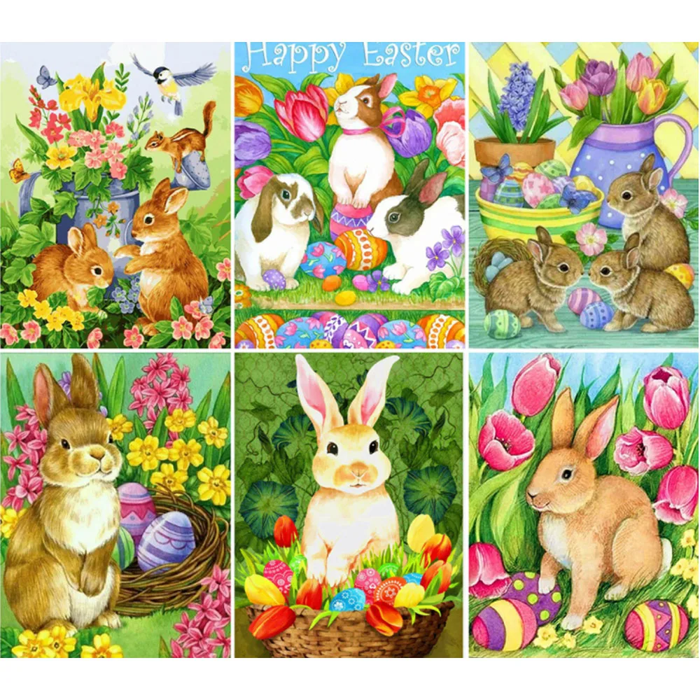 Yujohom DIY 5D алмазная вышивка, Пасхальная вышивка, алмазная живопись, мультяшная мозаика стразы, вышивка Кроликом, ручная работа, подарок