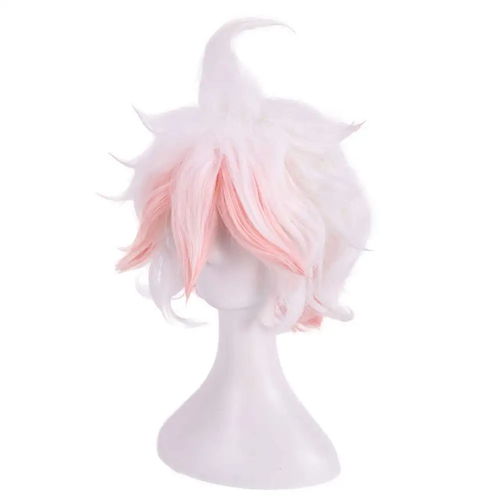 Парик для косплея из Danganronpa Dangan Ronpa Nagito Komaeda, термостойкий синтетический с короткими вьющимися волосами и шапочкой, с переходом цвета, белый, розовый