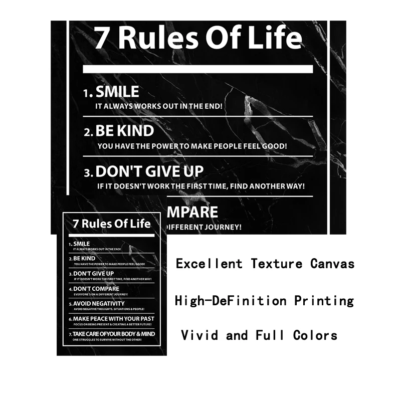 7 правил жизнь письмо мотивационные картина с цитатой вдохновения Плакаты и печать, Картина Настенная для Гостиная домашний декор