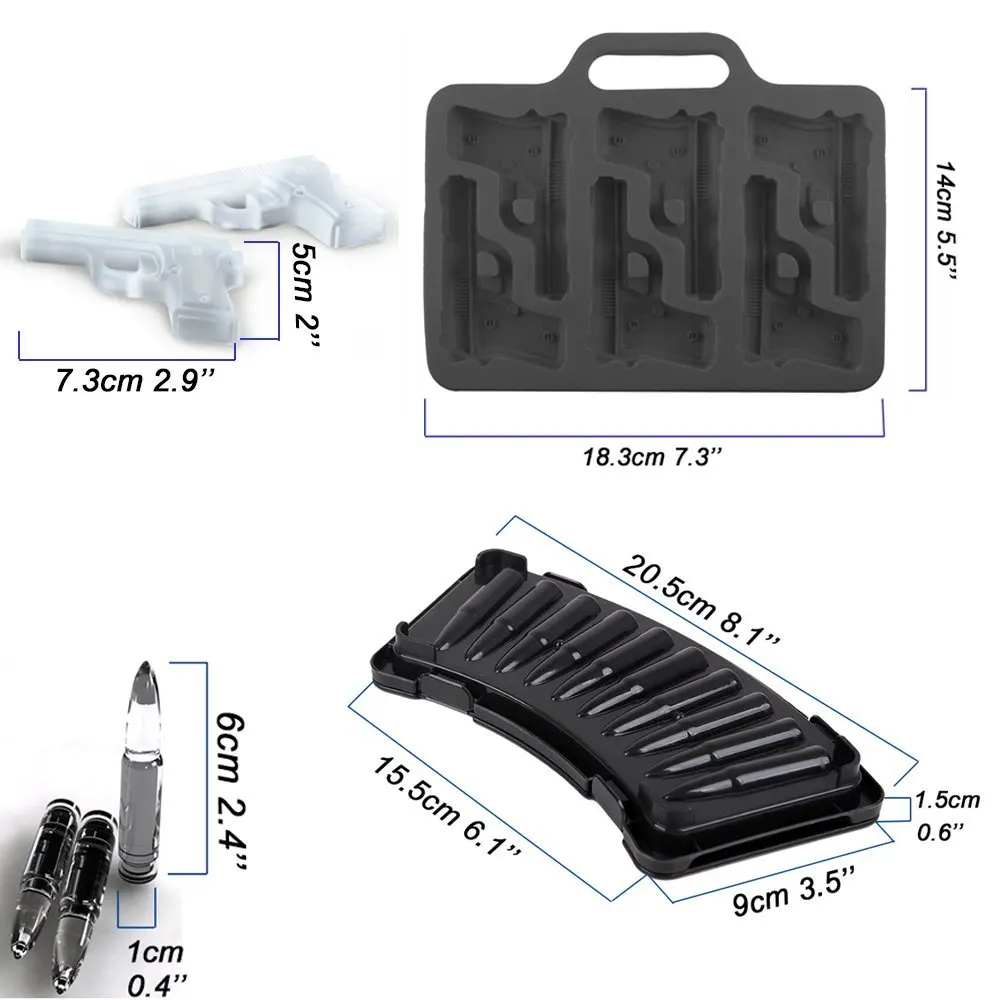 Материал: пластик/силикон (нетоксичный пищевой)Модель: граната/Пуля AK47/пистолетРазмер: как показано на картинке