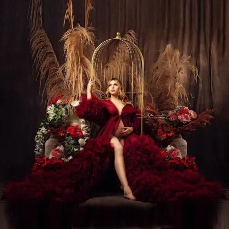 Классические красные тюлевые платья для беременных халаты с поясом ...