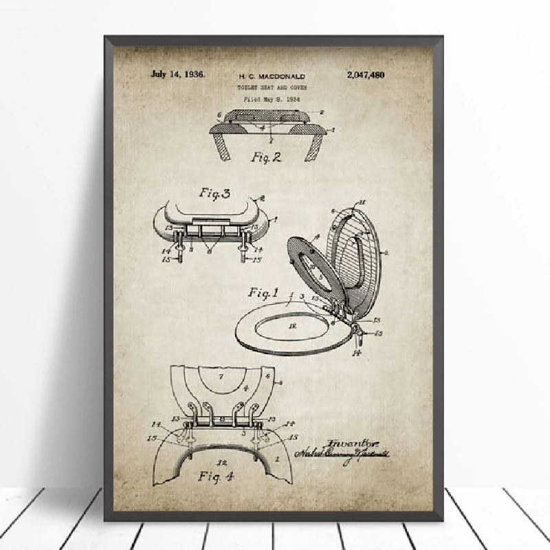 Патентованные винтажные постеры для ванной комнаты, рулон унитаза, цистерна, туалетный столик, домашний Настенный декор для домашнего интерьера, Картина на холсте, чертежи