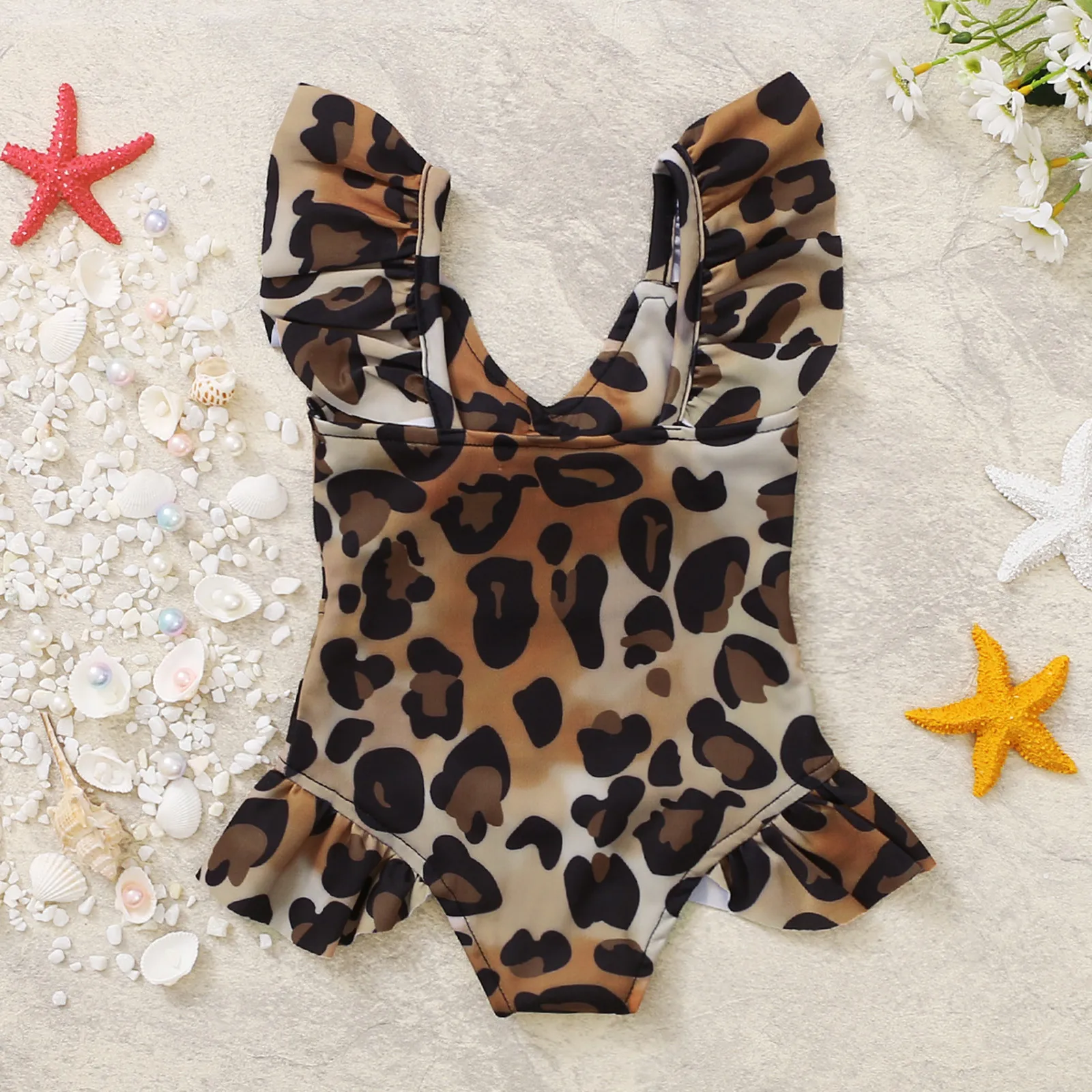 Слитный купальник для маленьких девочек с леопардовым принтом
