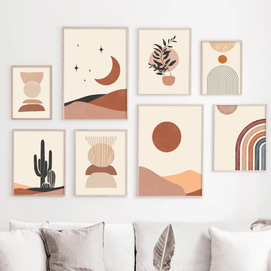 Абстрактный пустынный кактус, геометрический пейзаж, настенная живо...