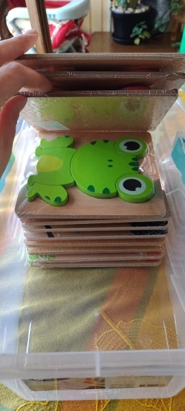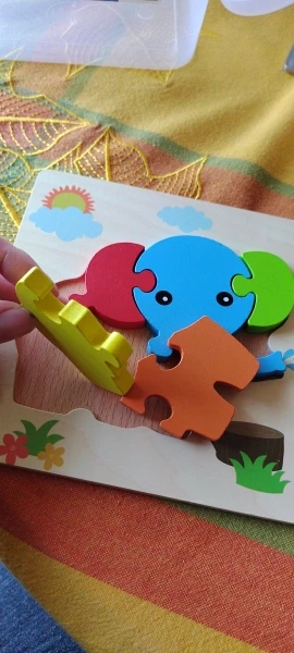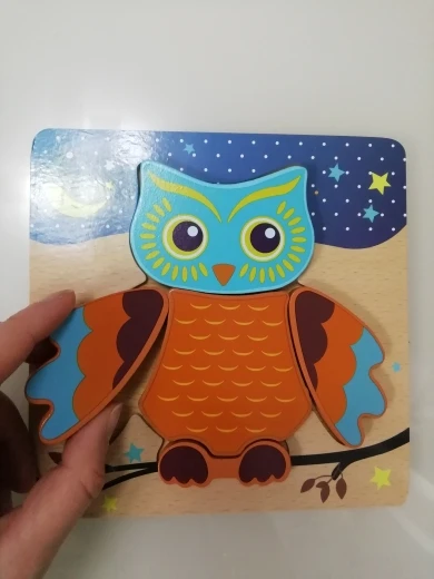 Хорошая головоломка для маленьких, достаточно больших деталей для безопасности, но среднего качества, мой сын положил в рот, и краска трескается. Использовать под контролем