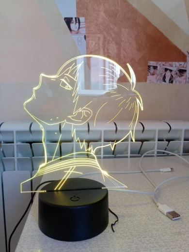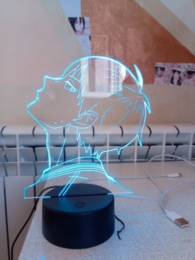 пришло достаточно быстро, Кагеяма просто чудо, работает от провода, но можно вставить батарейки, как только включаешь в сеть, плавно меняет цвета, потом уже можно выбрать, какой хочешь. заказывайте т-т п. с. там пленку снимать нужно с двух сторон.