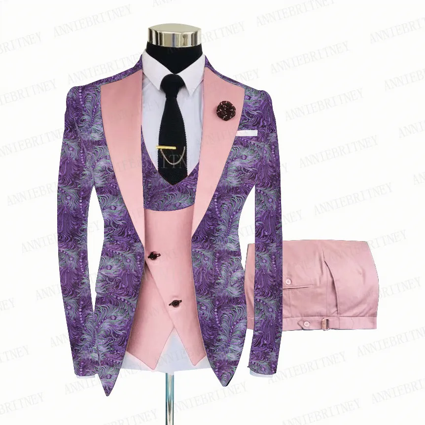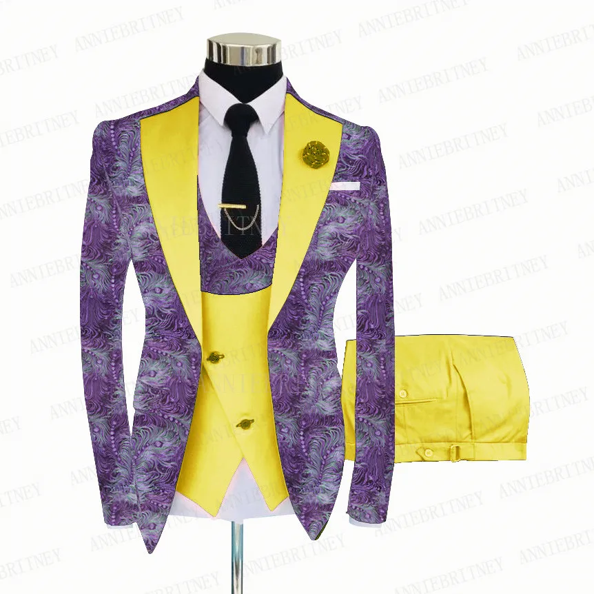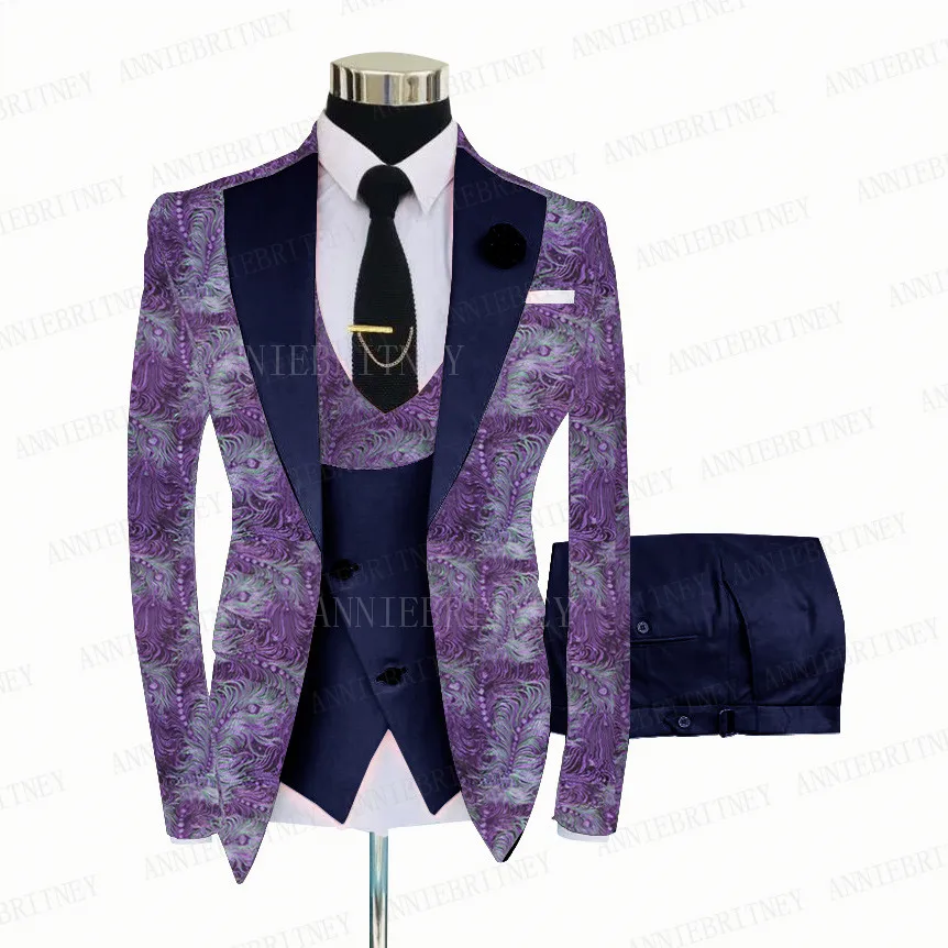 Жаккардовый костюм для мужчин из 3 предметов, приталенный пиджак, д...