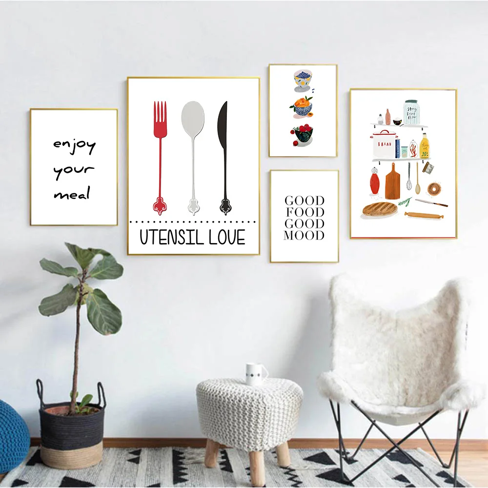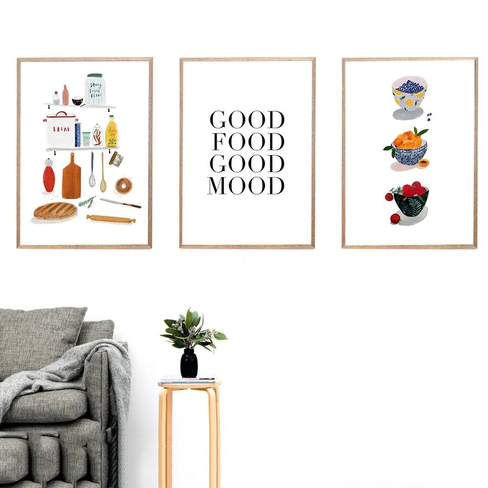 Кухонная плита, Холщовый постер, скандинавский мультяшный рисунок с фруктами, настенная Художественная печать, простое украшение для дома, картина с цитатами, скандинавский