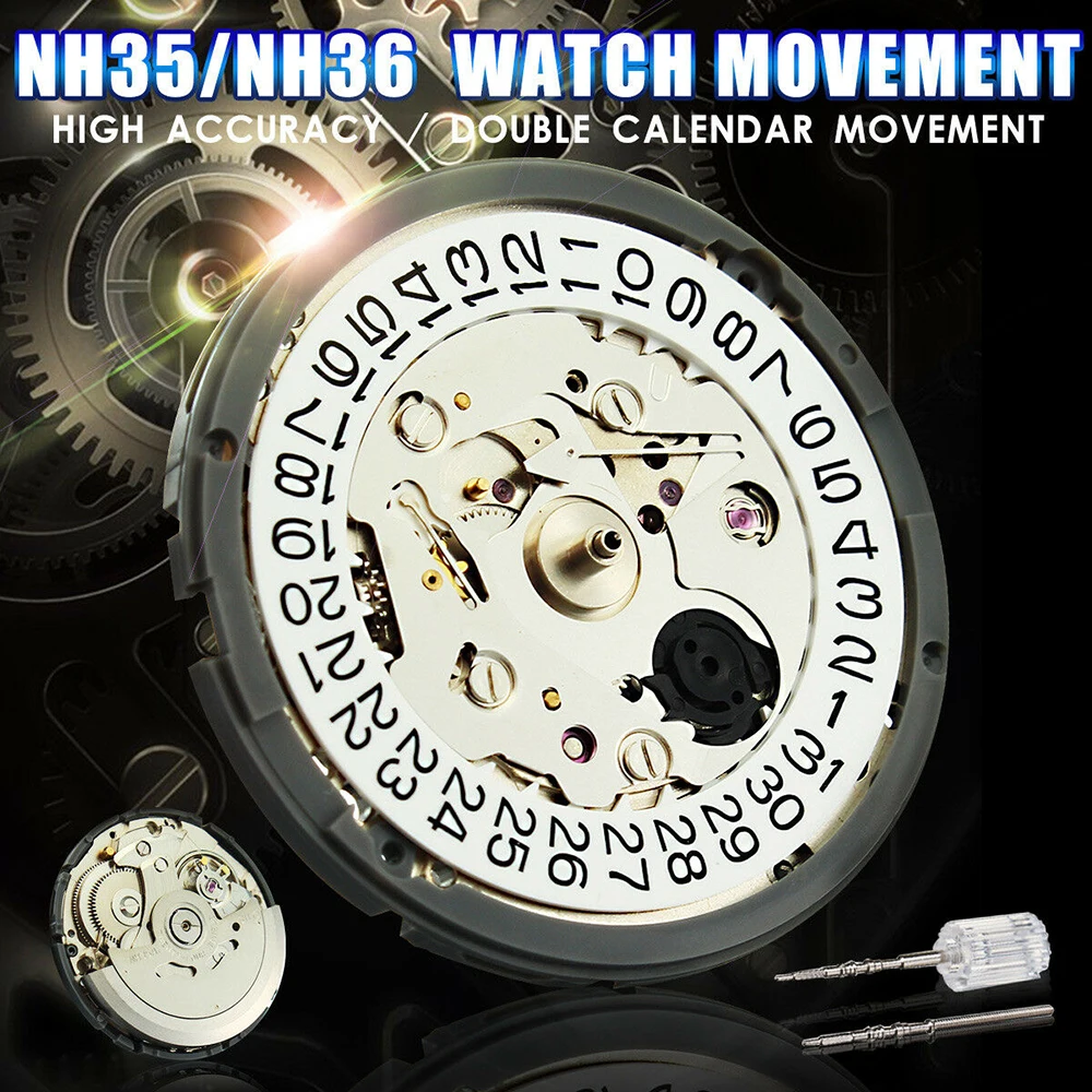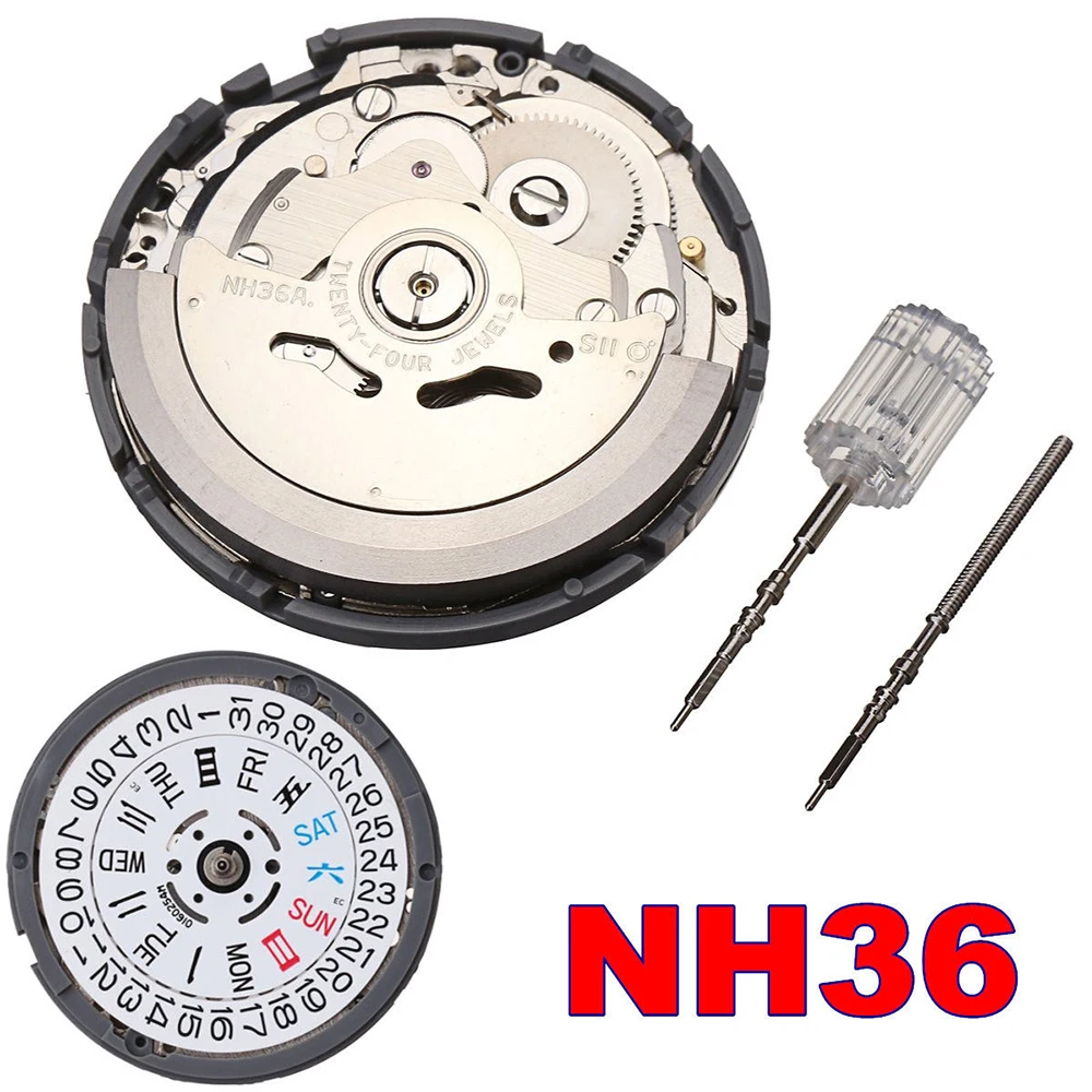 Механизм механических часов полностью автоматический, высокоточный механизм для наручных часов с намоточным механизмом NH35 NH36, набор часов с указанием даты и дня