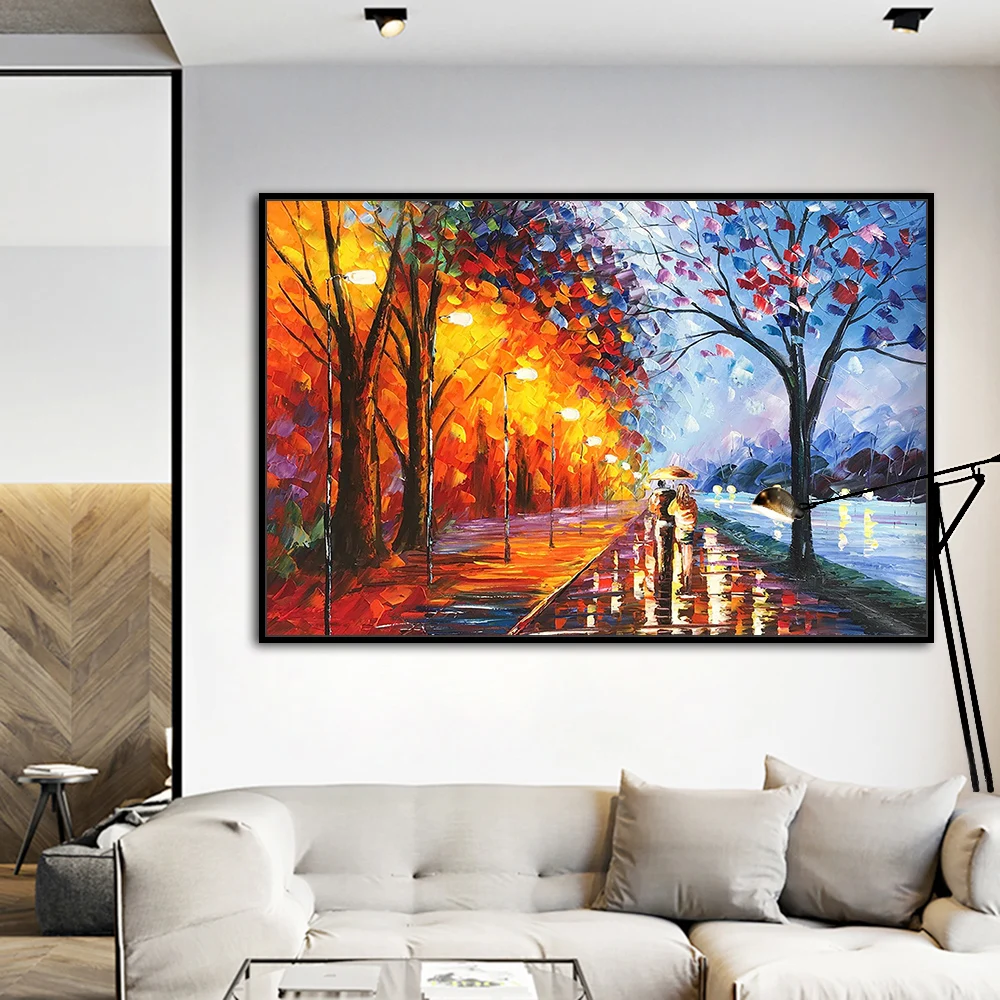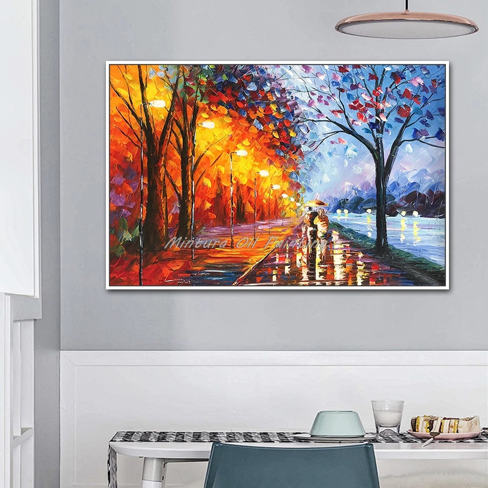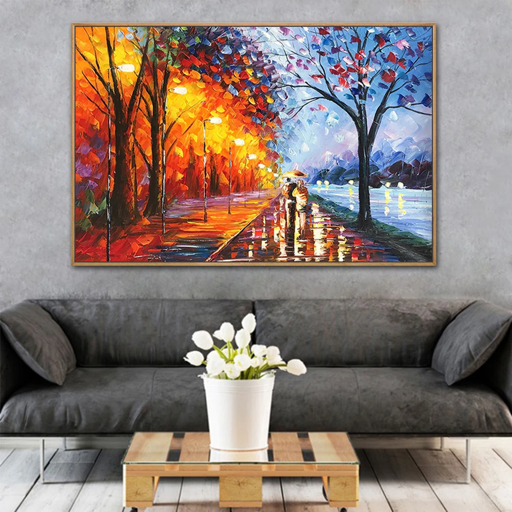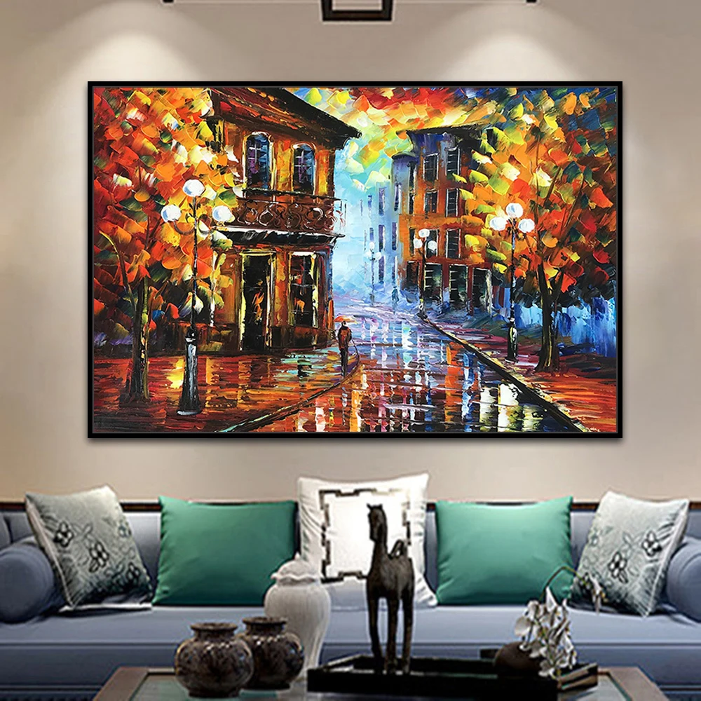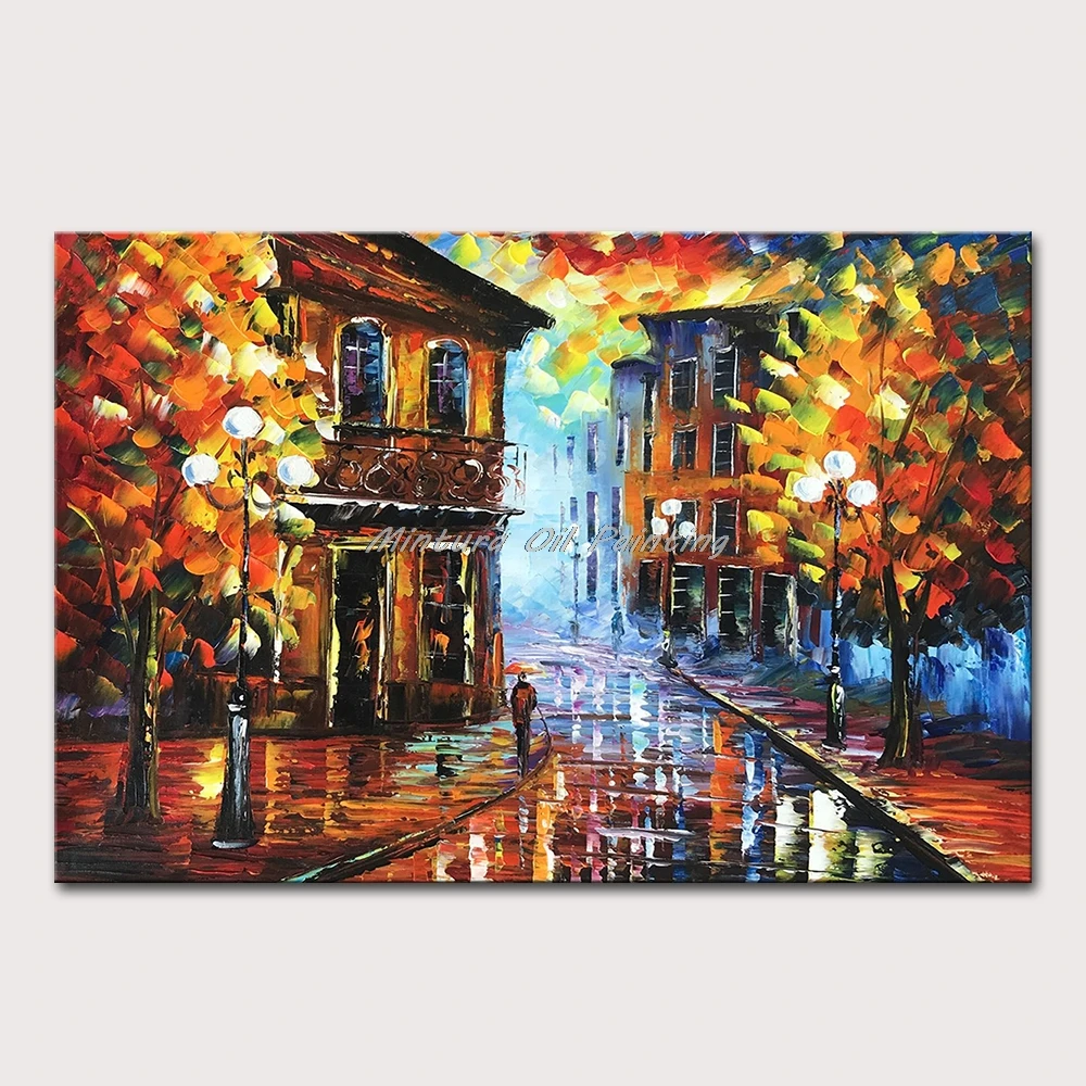 Картина на стену Mintura для гостиной, Масляные картины на холсте, ручная роспись, уличная сцена в ночное время, домашний декор, настенная живопись без рамки.