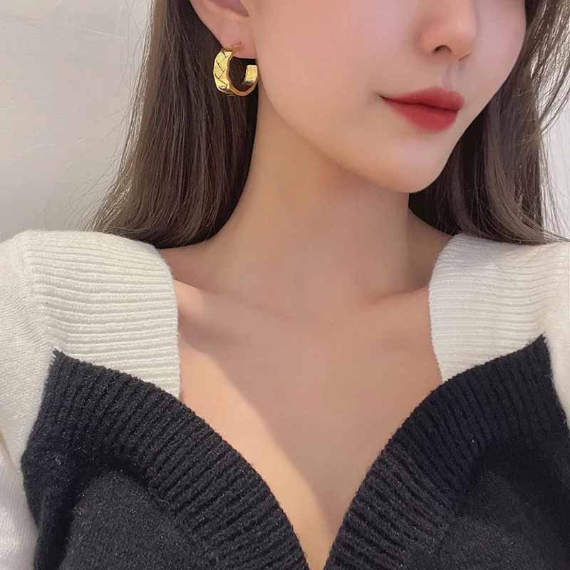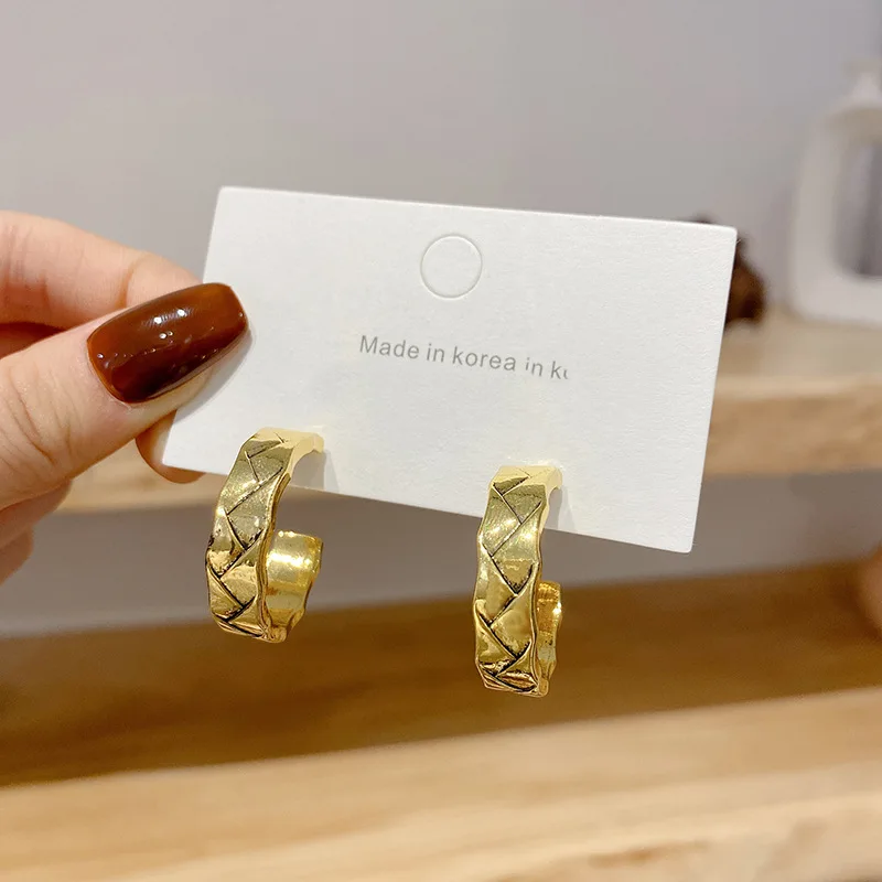 Простые металлические серьги в европейском и американском ретро-стиле с квадратной сеткой, модные Универсальные элегантные женские серьги, Подарочная бижутерия