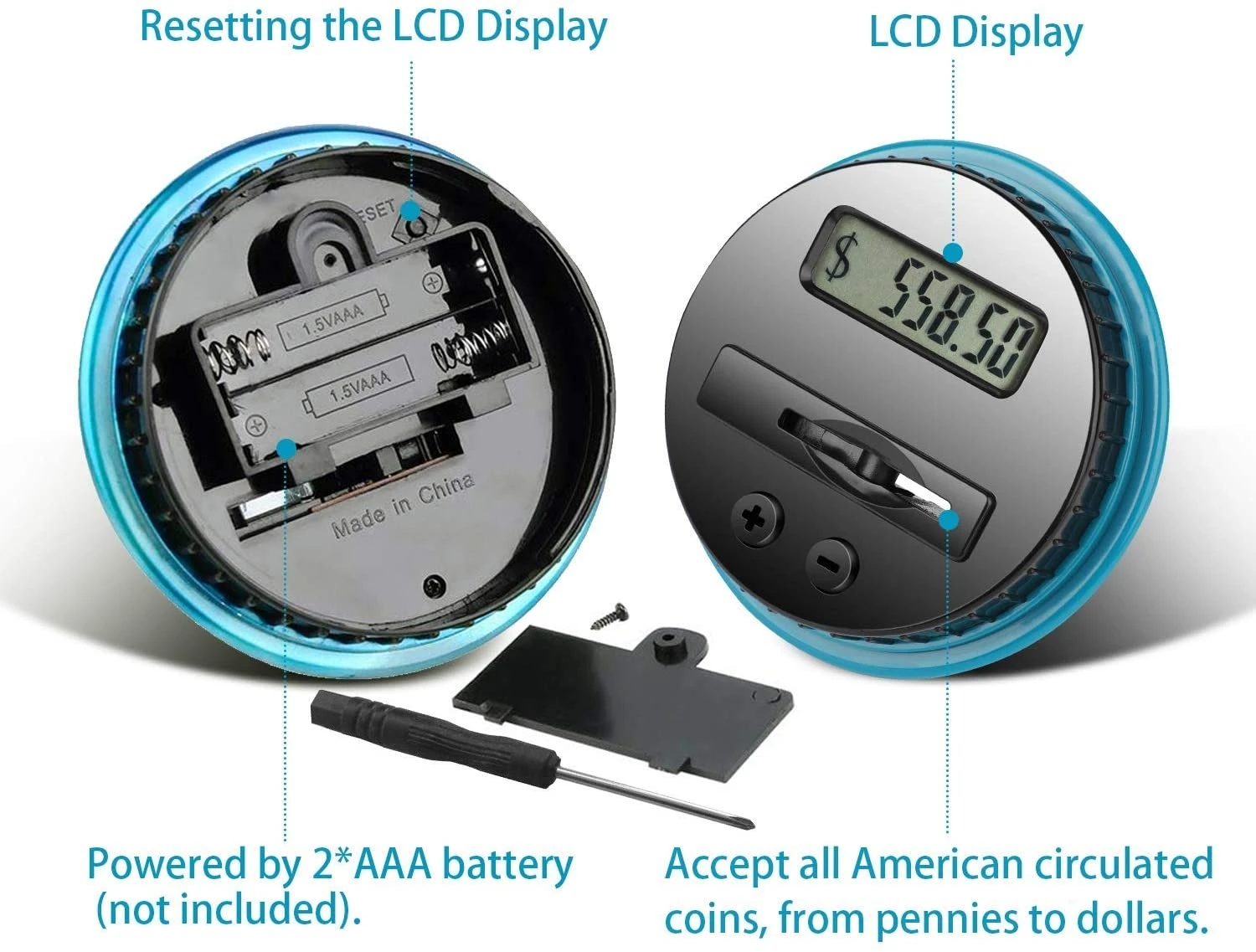 Копилка 1,8 л со счетчиком для монет, электронная цифровая коробка с ЖК-дисплеем подсчет монет для экономии денег, коробка для хранения монет, 1,5 л, доллары США, евро, фунтов стерлингов
