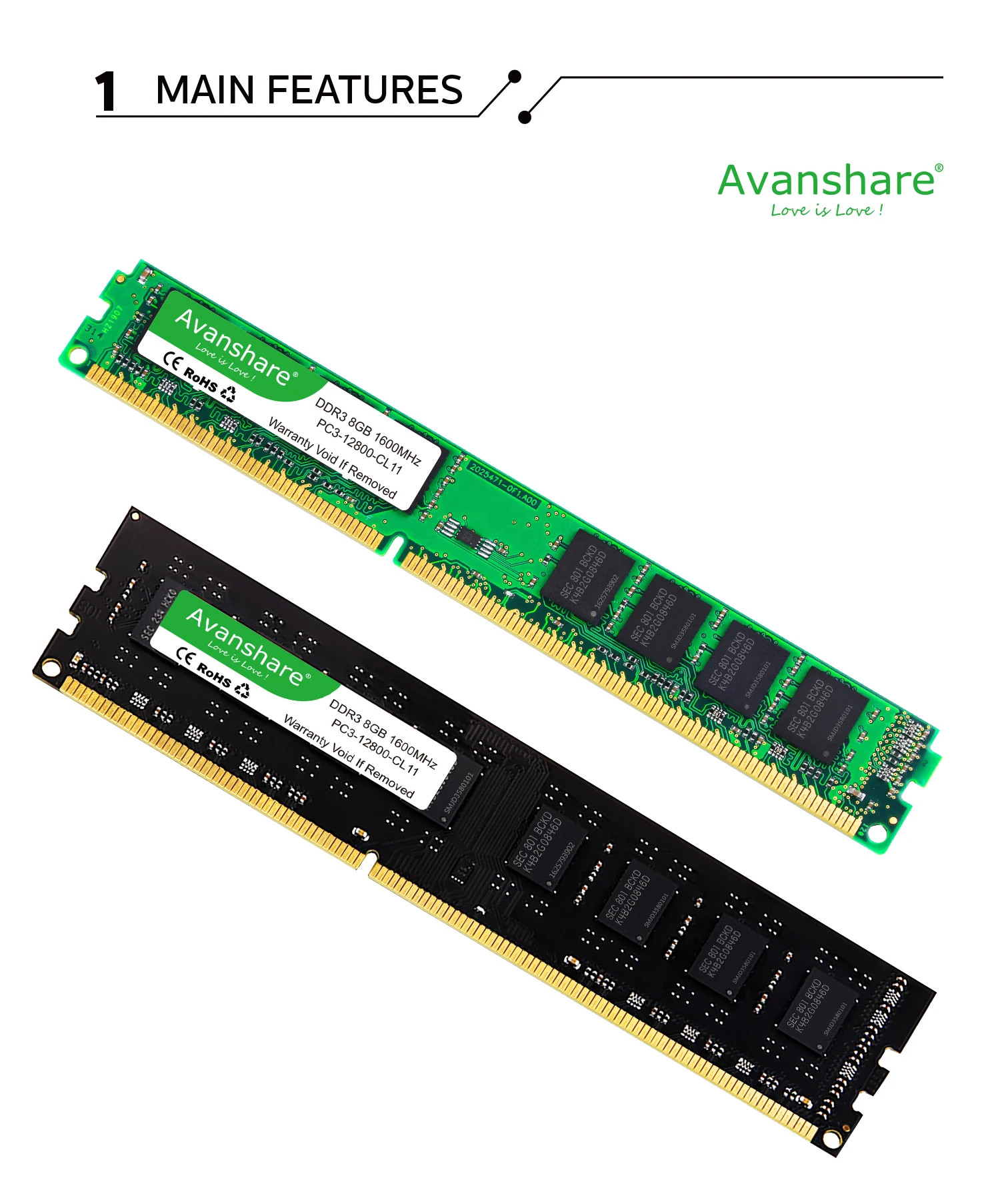 ОЗУ Avanshare DDR3, DDR4, 16 ГБ, 8 ГБ, 4 Гб, 2 Гб, 1333, 1600, 2400, 2666, 3200 МГц, модуль памяти UDIMM для настольных ПК, для Intel, AMD все материнские платы