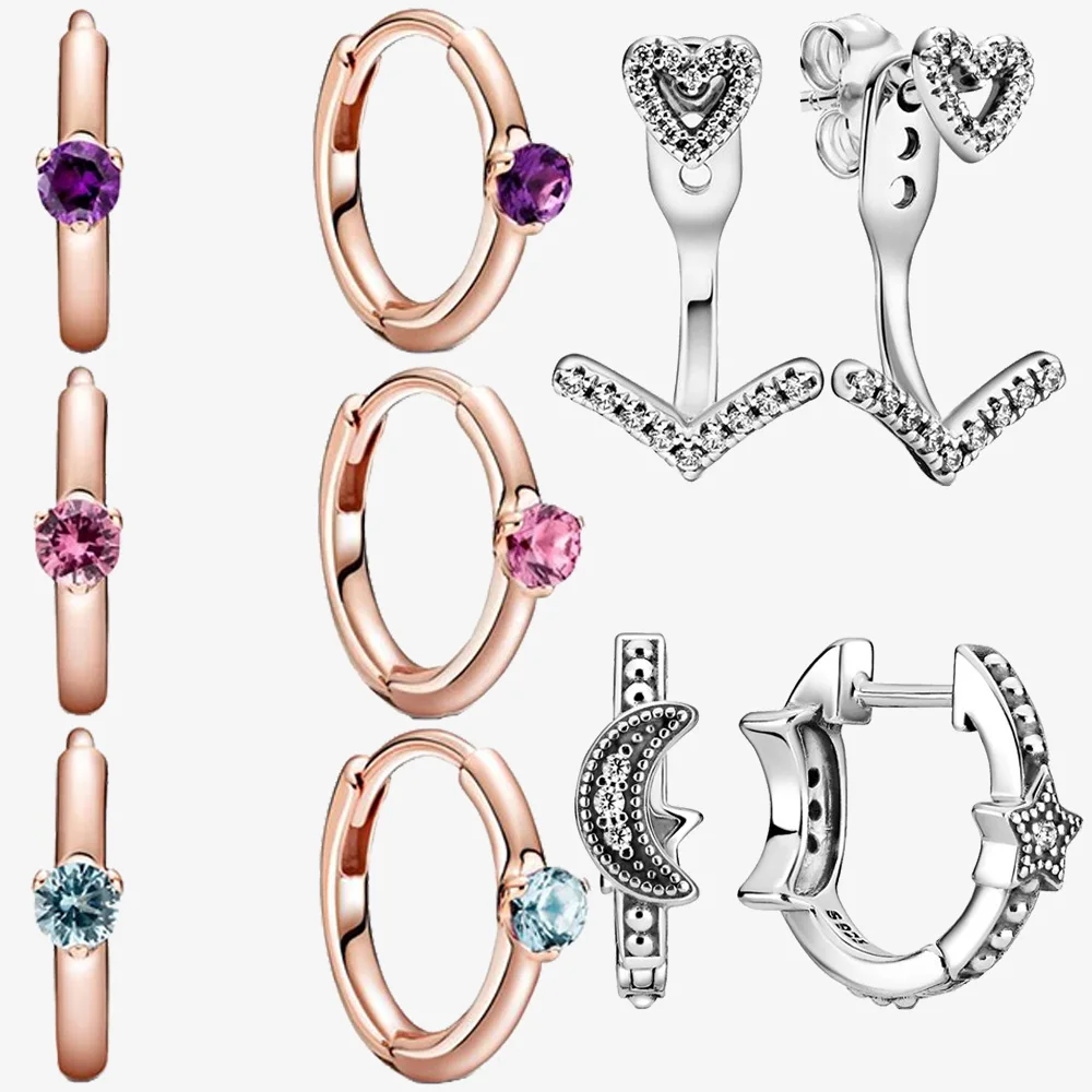Женские серьги-кольца из серебра 925 пробы, с подвеской в виде сердца