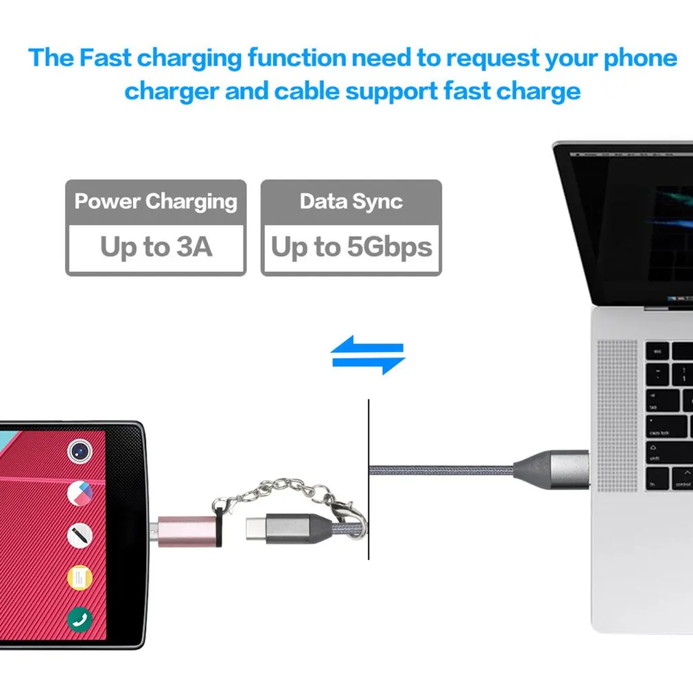 Мини-портативный алюминиевый переходник USB-C на Micro USB, с брелоком, с защитой от потери, USB Type-C на Micro USB