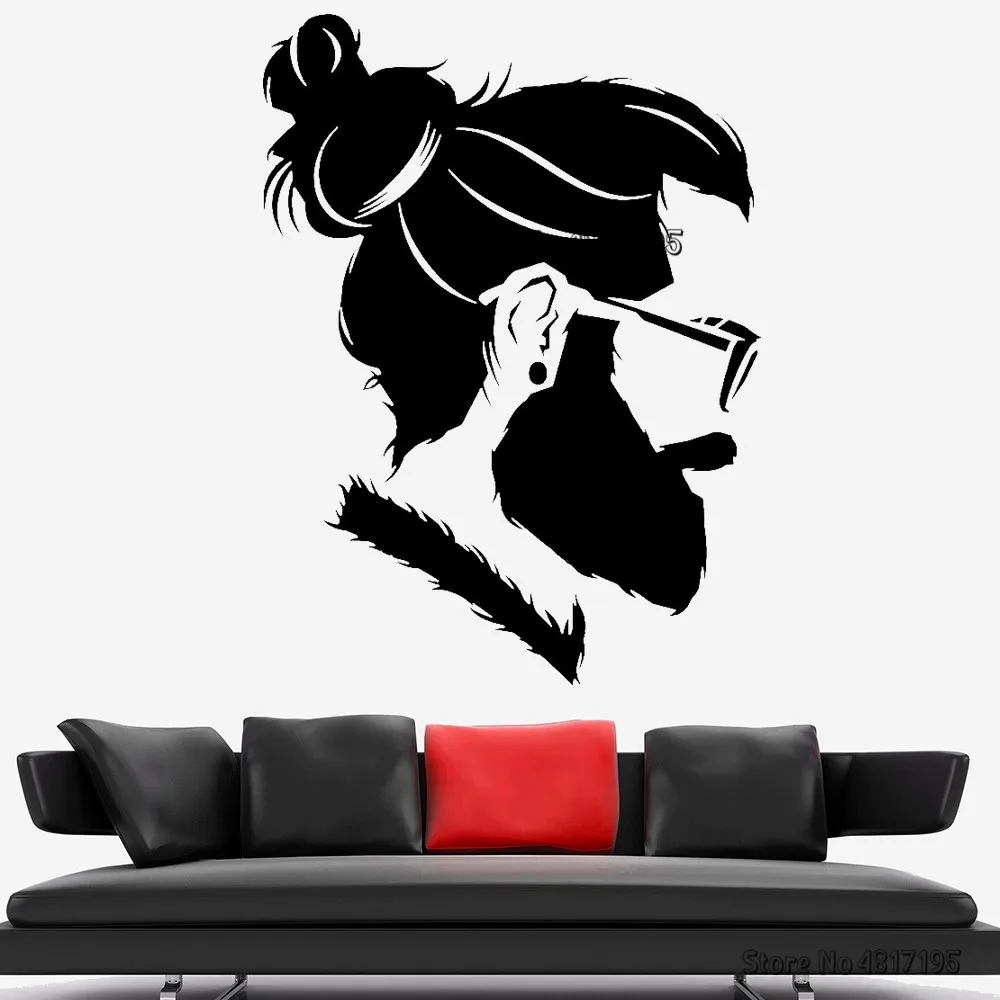 Салонный винил для волос наклейки Уход за волосами и бреет виниловые наклейки на стены окна постер с изображением фрески Hipster Человек стена парикмахерской Стикеры вывеска парикмахера