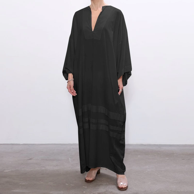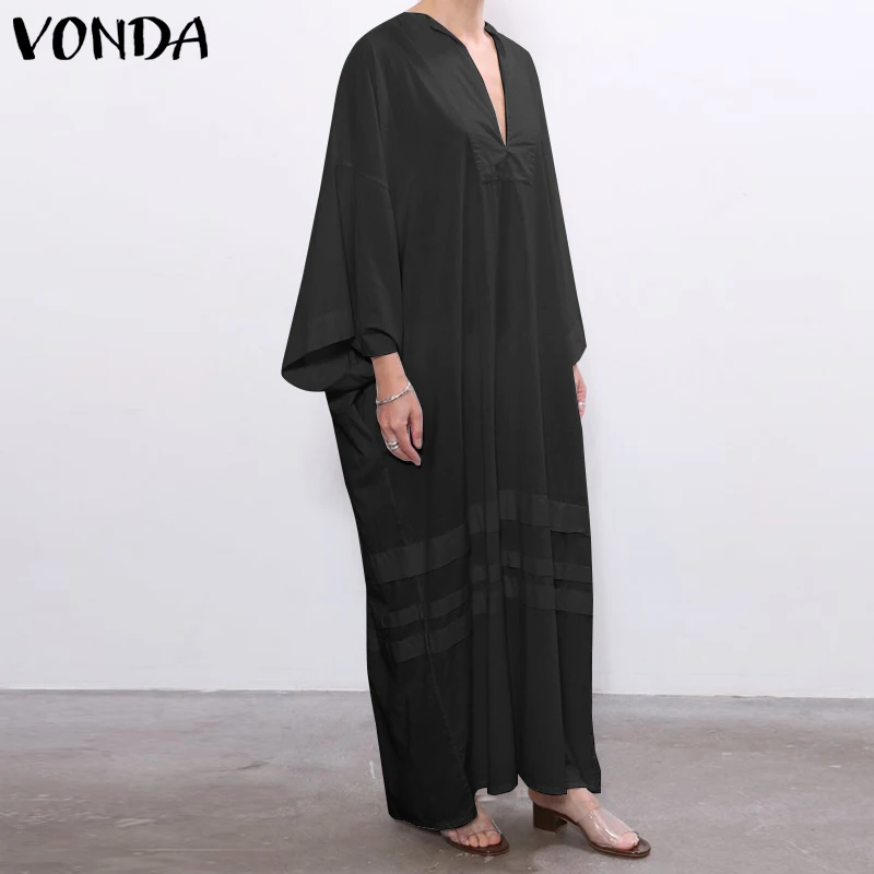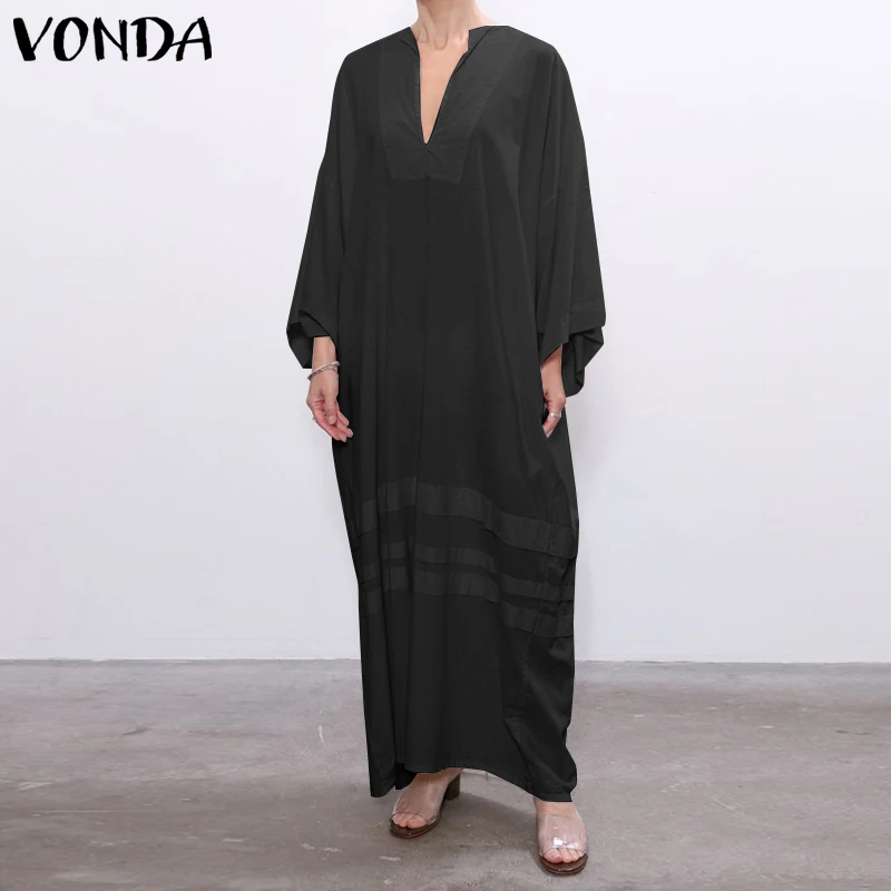 Винтажное женское платье VONDA в богемном стиле с длинным рукавом и глубоким V-образным вырезом, длинное вечернее платье макси 2021, повседневное женское платье, S- Vestido