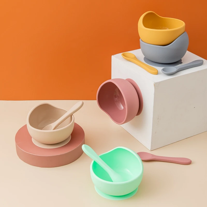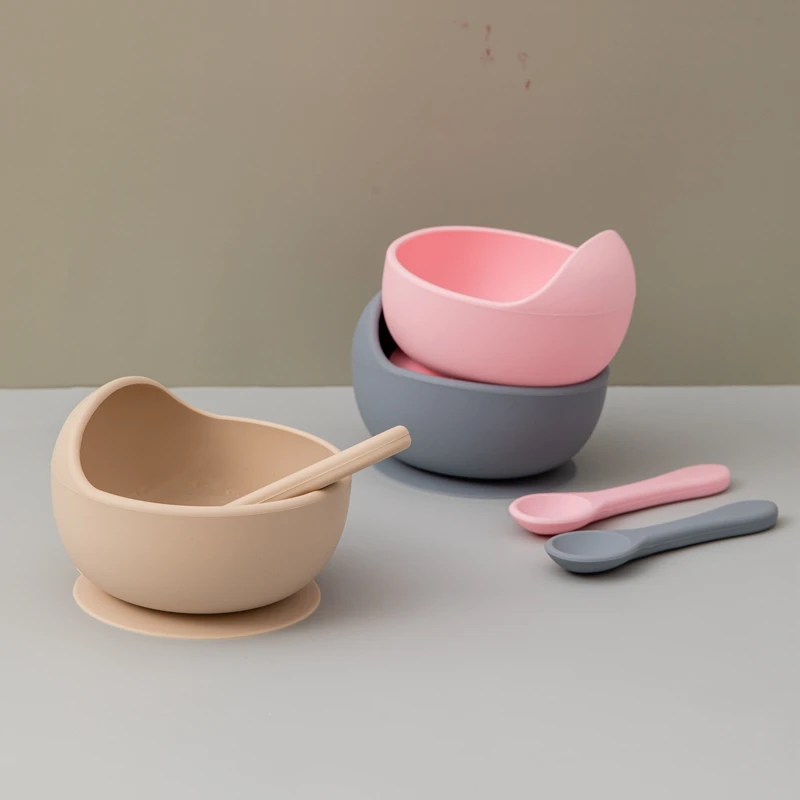 Bopoobo 2 шт.компл., силиконовая посуда для малышей, набор для кормления детей, пищевая Нескользящая силиконовая миска, ложка, подарок, Товары для детей