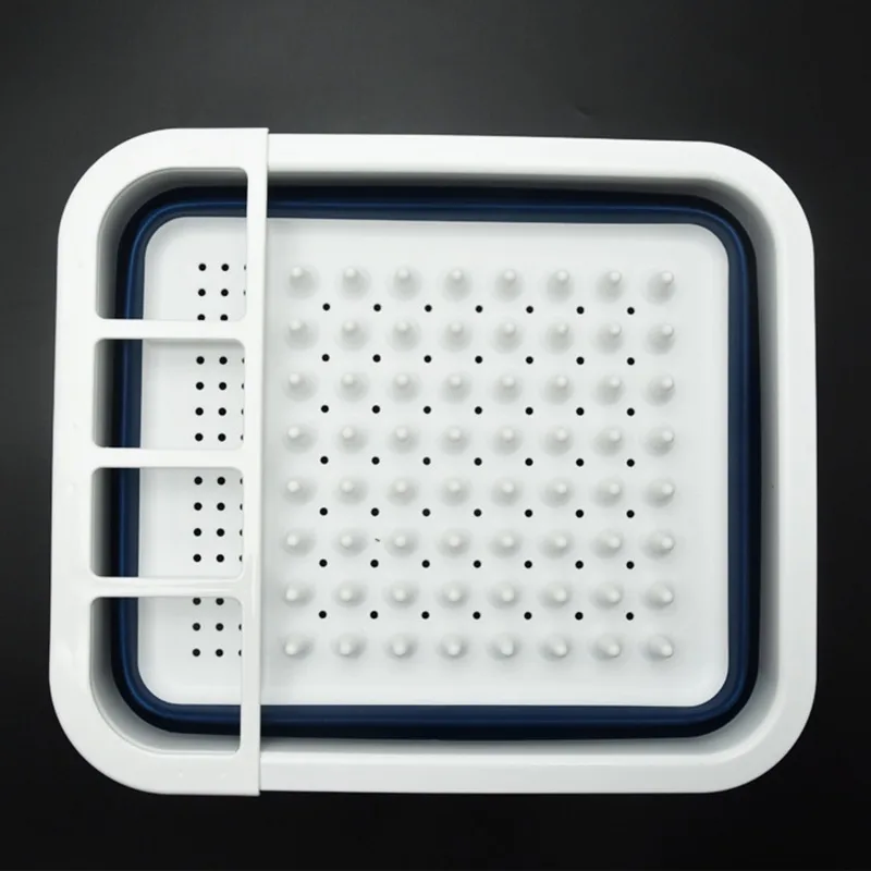 Особенности:1. Прочный материал, легкая чистка.2. Изделие изготовлено из ПП + ТПР материала, не легко повредить, не легко деформируется.3. Конструкция большой емкости. Можно положить блюда, чашки и другую утварь.4. Не легко накапливать воду. Он чистый.5. Складывается, легко принимается, прост в эксплуатации и легко моется.