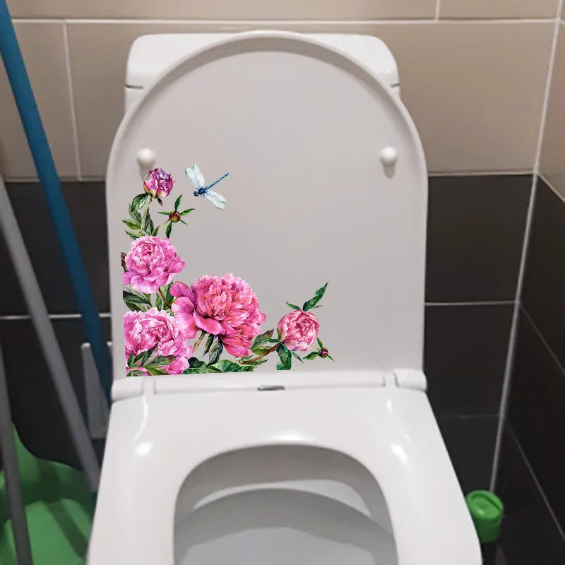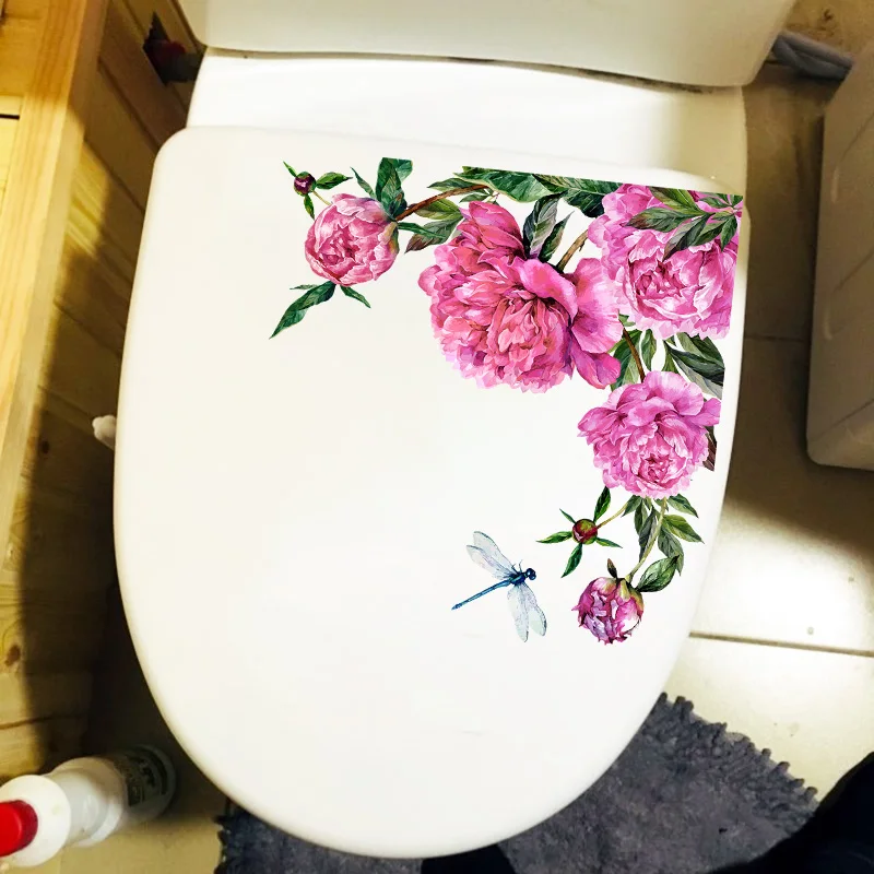 ZTTZDY 23,5 23,8 см роскошный пион Стрекоза креативные наклейки для туалета декор для ванной комнаты классические наклейки на стену T2-1087