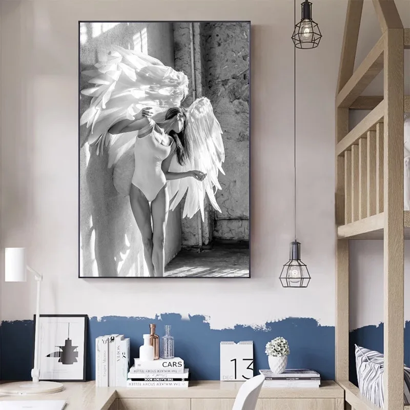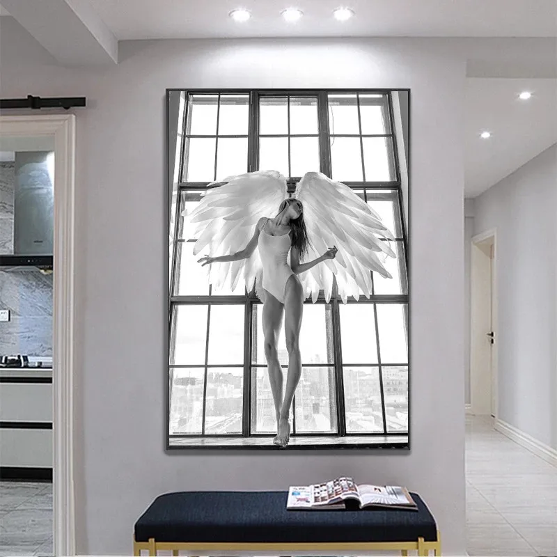 Черно-белые плакаты с изображением танцовщицы, девушки, ангела, крыла, искусства на стену, картины для спортзала, йоги, художественный Декор для комнаты