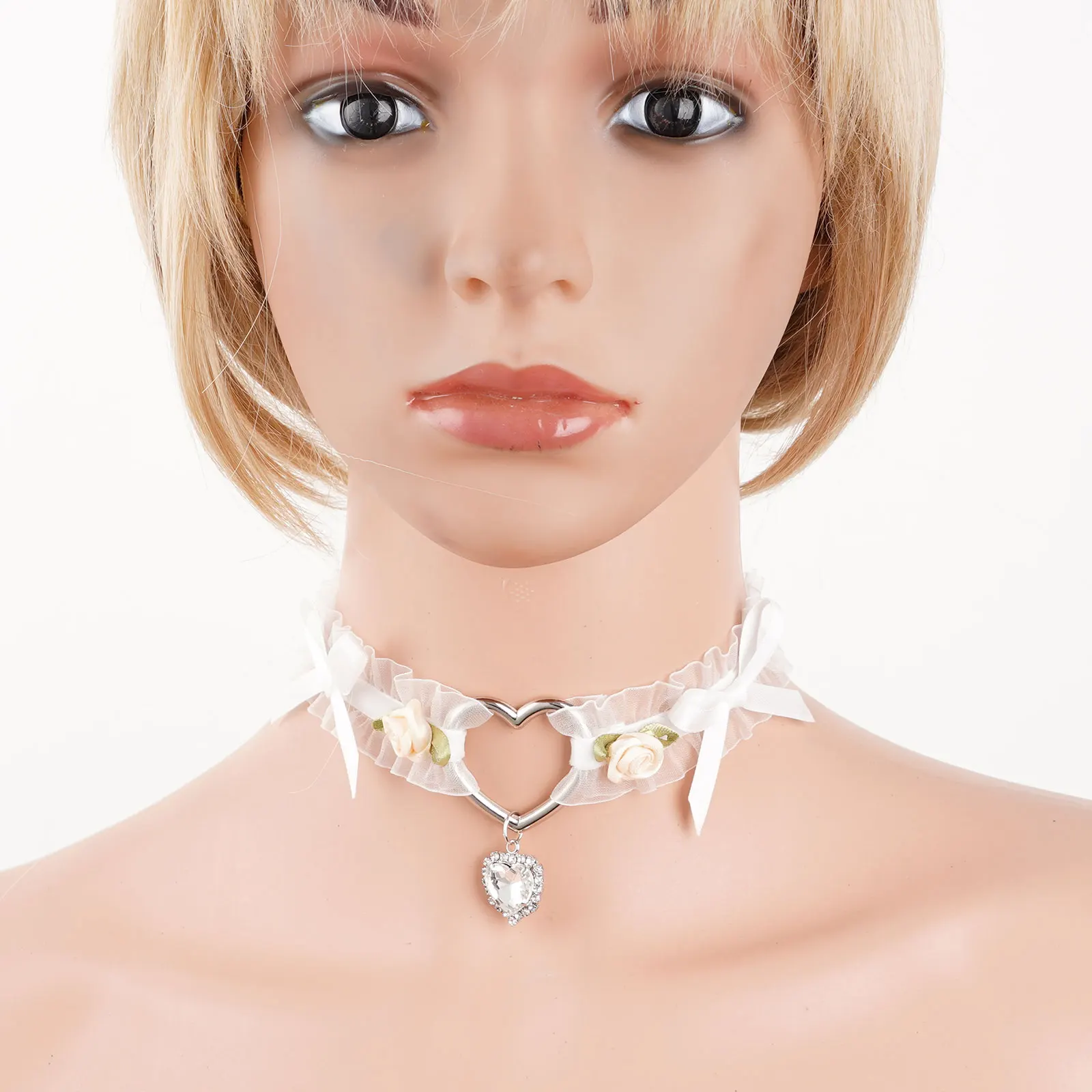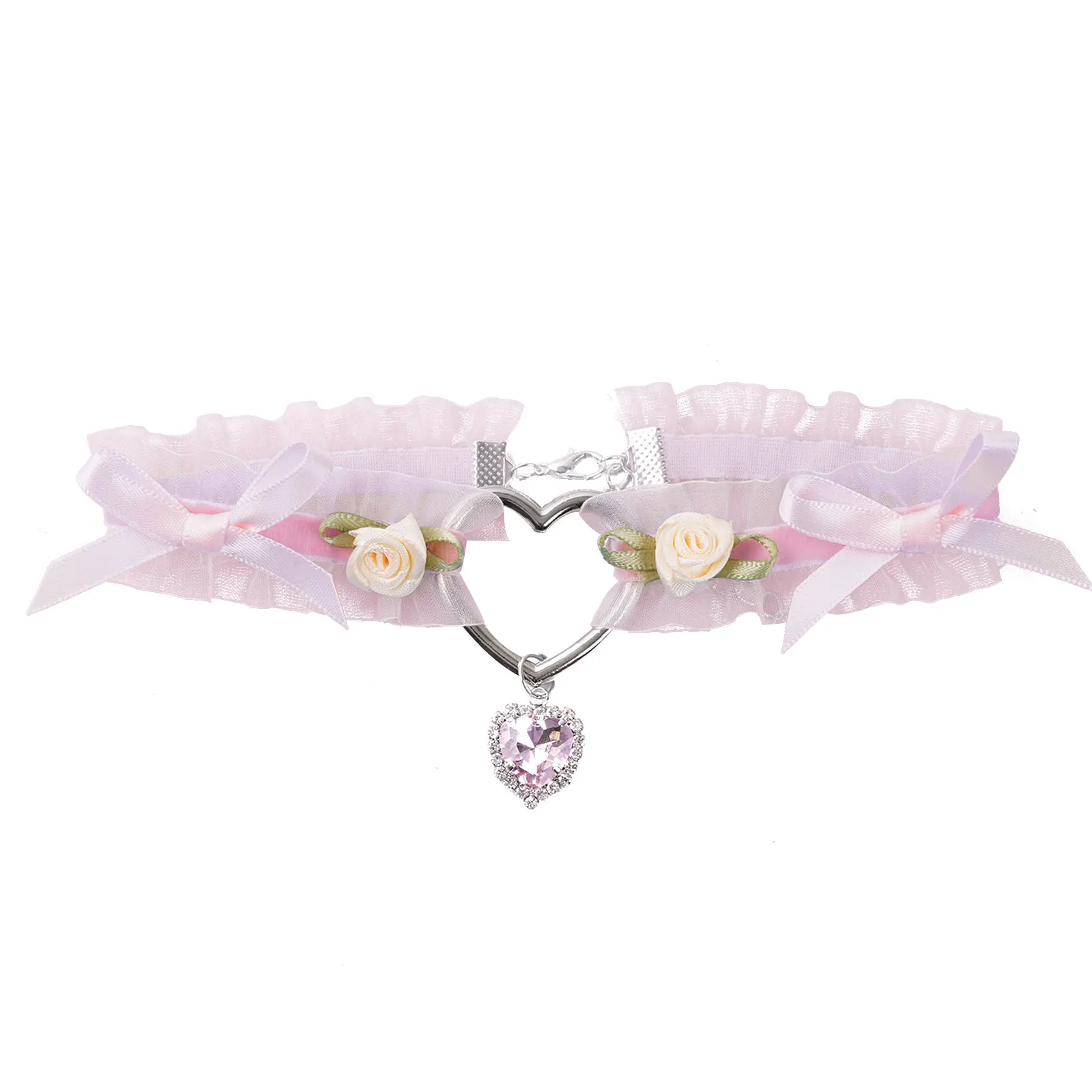 Женское колье для девочек Kawaii, японское аниме Loli, колье ручной работы, гофрированное кружевное ожерелье на шею, сексуальное маскарадное ожерелье с подвеской